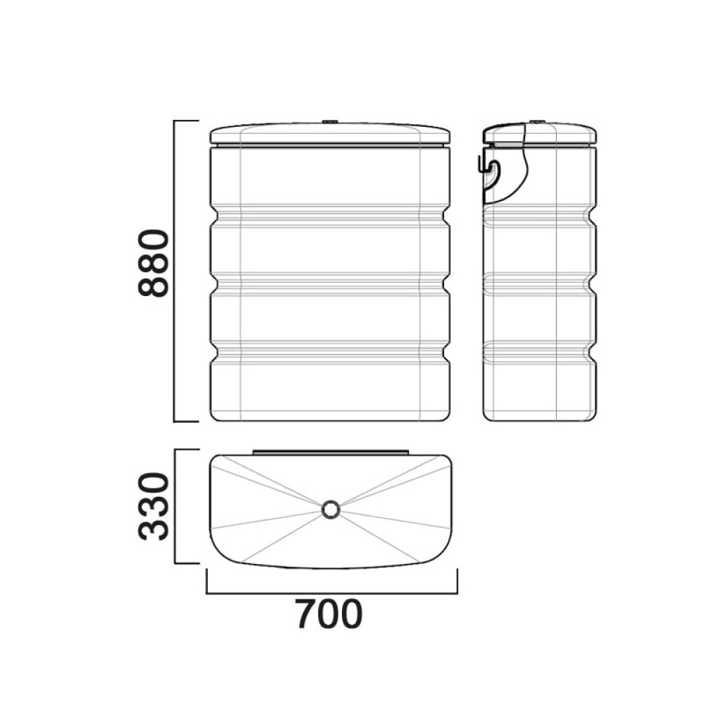 Имеет эргономичную прямоугольную форму с плоской задней стенкой, легко помещается в угол помещения, плотно прилегая к его стене, не загромождая пространство. На задней стенке предусмотрена верхняя кромка и стальной кронштейн, при помощи которого крепится бак на стену.