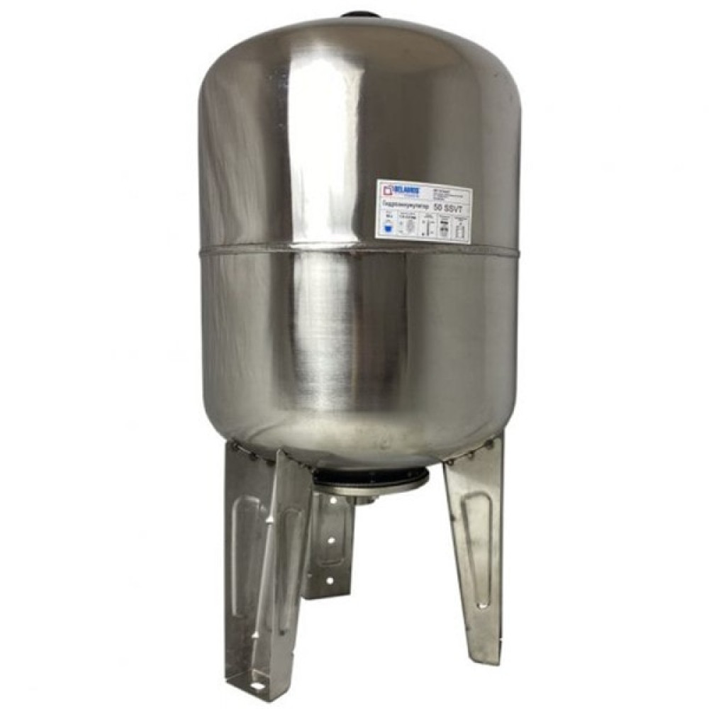 Гидроаккумулятор Беламос 50SSVT нержавейка, вертикальный, макс давление 12 бар, нержавеющий фланец, макс температура до 95 градусов, мембрана из Немецкого материала