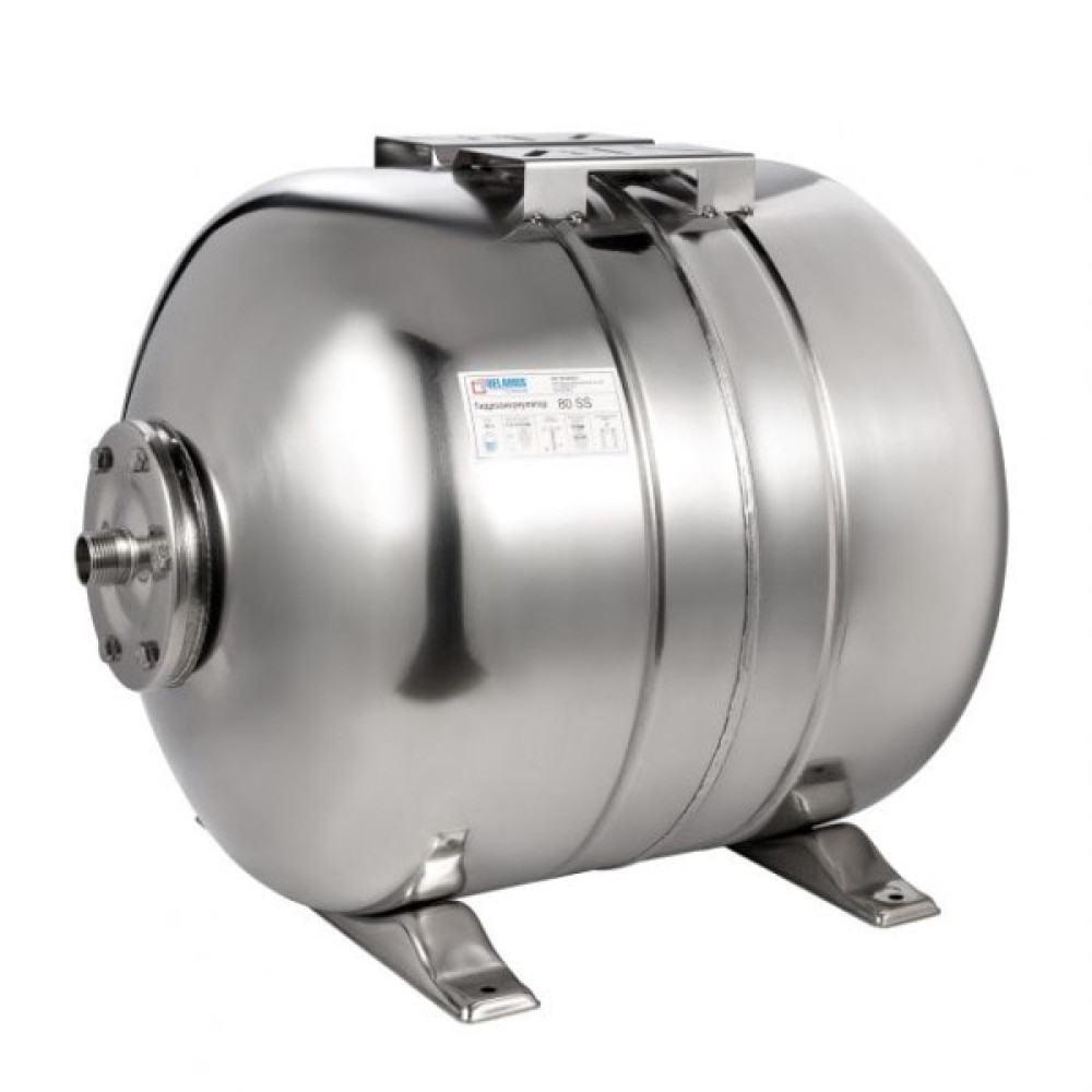 Belamos 80 литров, гидроаккумулятор горизонтальный, нержавеющая сталь 1" (80SS). Этот мембранный бак предназначен для снижения частоты включений насоса, хранения резерва воды и стабилизации давления в системе водоснабжения. Идеален для бытовых систем с питьевой водой.