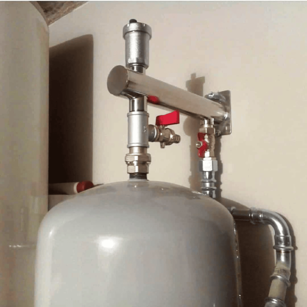 Консоль для расширительного бака из нержавеющей стали КРБ 20-15х2. Изделие позволяет устанавливать бак вертикально. Подключение бака к системе осуществляется посредством резьбового штуцера 3/4" на консоли. Консоль в свою очередь подключается к системе соединением ½". Оснащается монтажной пластиной с двумя пазами для точного размещения бака на стене