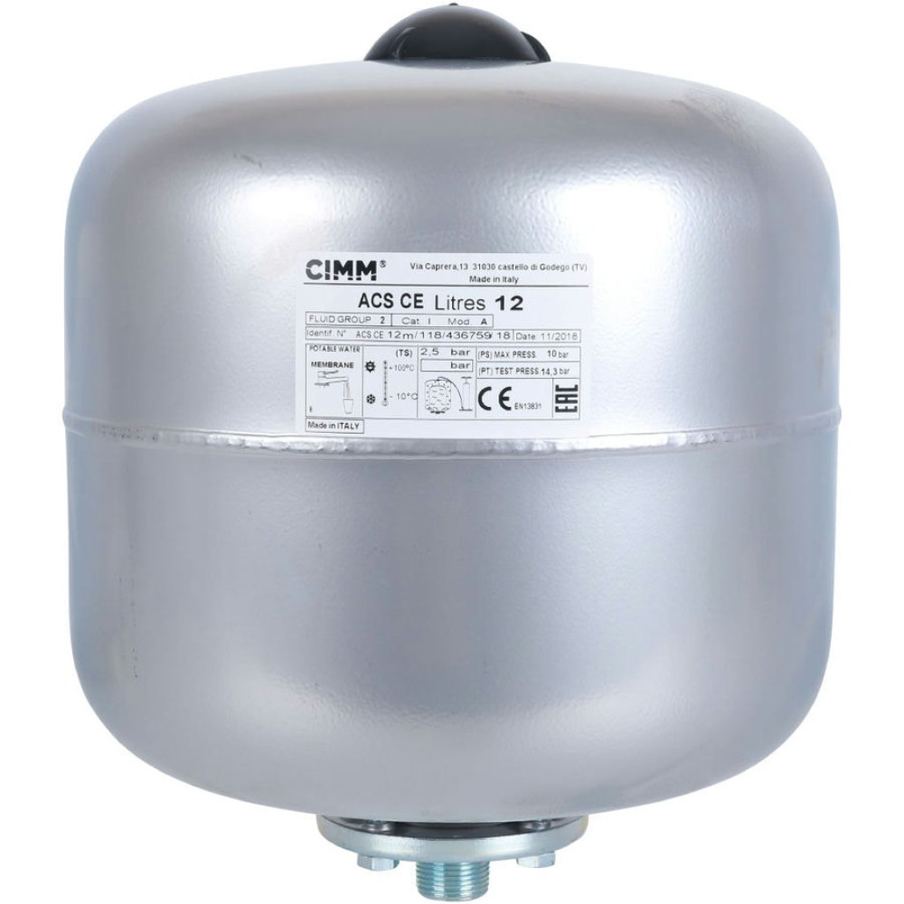 Расширительный бак для горячего водоснабжения CIMM ACS CE 12 Итальянского производства с повышенной гарантией служит для компенсации расширения горячей воды в системах водоснабжения. Баки расчитаны на рабочую температуру до + 100 градусов. Внешне бак окрашен высококачественной порошковой эмалью серого цвета. В качестве основного элемента бака - мембрана изготовлена из мягкой пищевой резины марки EPDM.