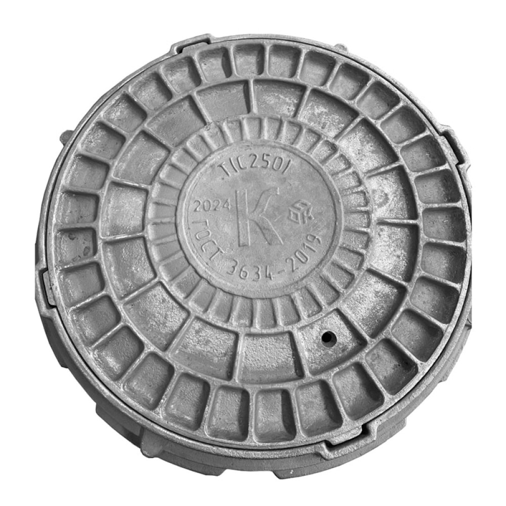 Люк чугун ДПК канализационный (К) Т тяжелый Т(С250)-1-60 ГОСТ 3634-2019 4-х ушковый