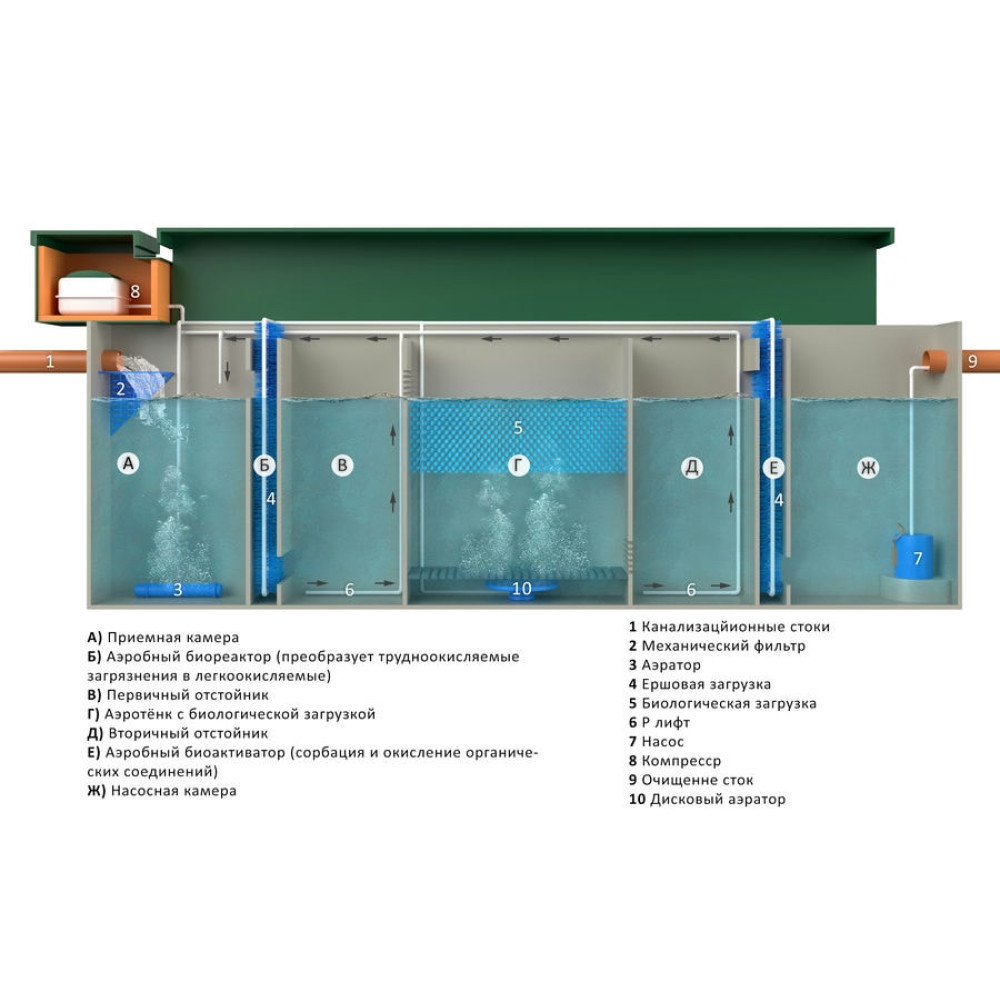 Установка глубокой биологической очистки GLOSEN 3С (с системой самотечной очистки) – это инновационное разработка от компании GoodWay. Эти передовые очистные сооружения (биологический септик) являются новым стандартом качества для каждого дома на российском рынке. Эта установка предназначена для использования 3-5 человеками.