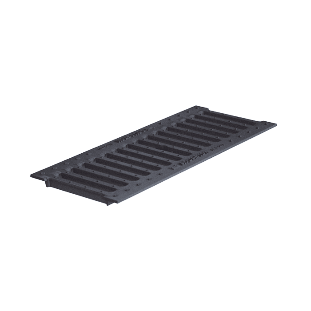 Данный тип решетки наиболее часто используется в частном строительстве, выдерживает нагрузку до 2,5 тонн (класс нагрузки С250), практичен в использовании и имеет презентабельный вид, который остается неизменным на протяжении долгих лет. К лотку крепится посредством фиксатора.