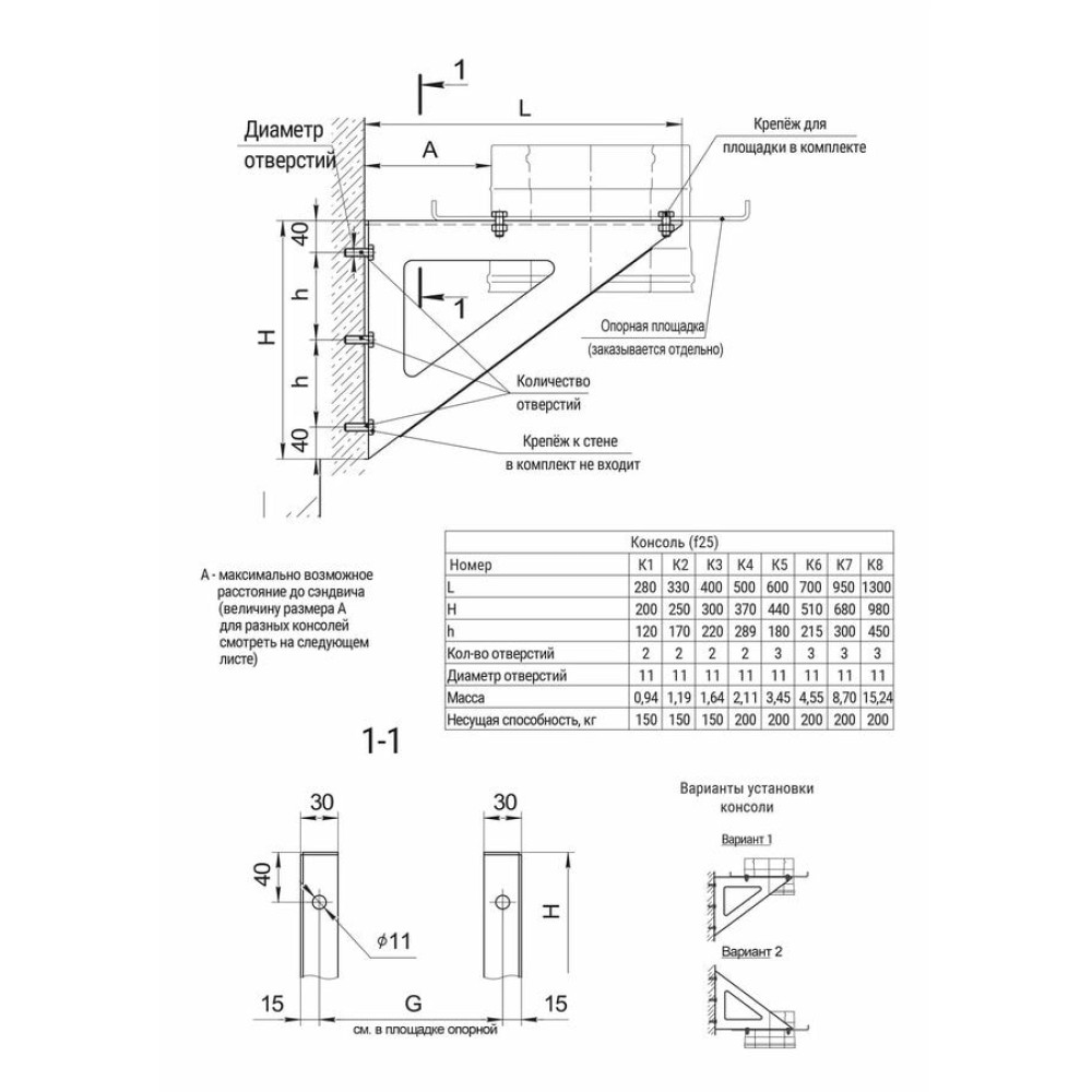 Консоль К1 Ferrum (2шт) вынос 500мм