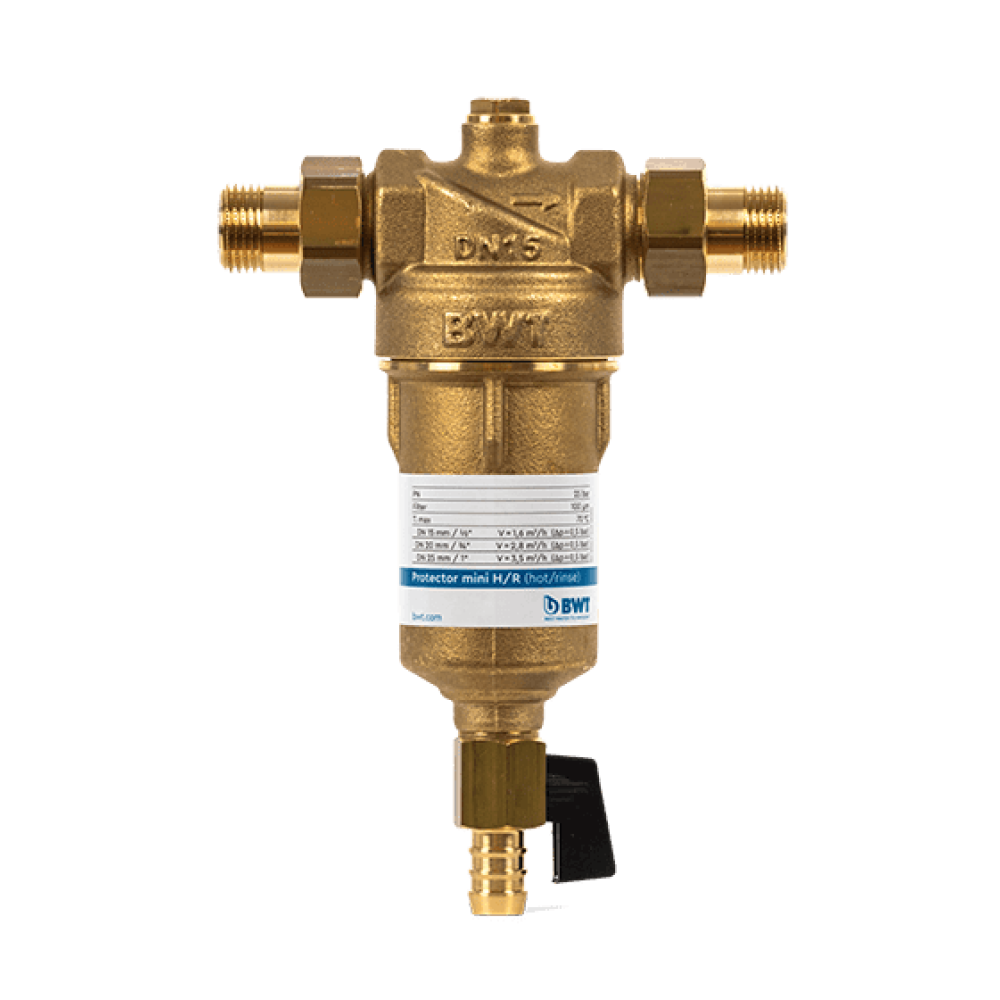 Protector Mini H/R используется для фильтрации горячей воды с температурой более 70 градусов. Колба фильтра изготовлена из латуни, сплав отличается высокой прочностью и стойкостью к коррозии.