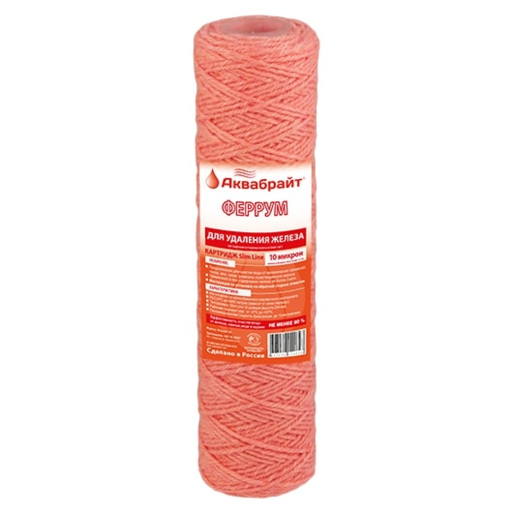 Картридж АКВАБРАЙТ ФЕРРУМ-10 изготовлен из ионообменного веревочного полипропилена с пищевым допуском.