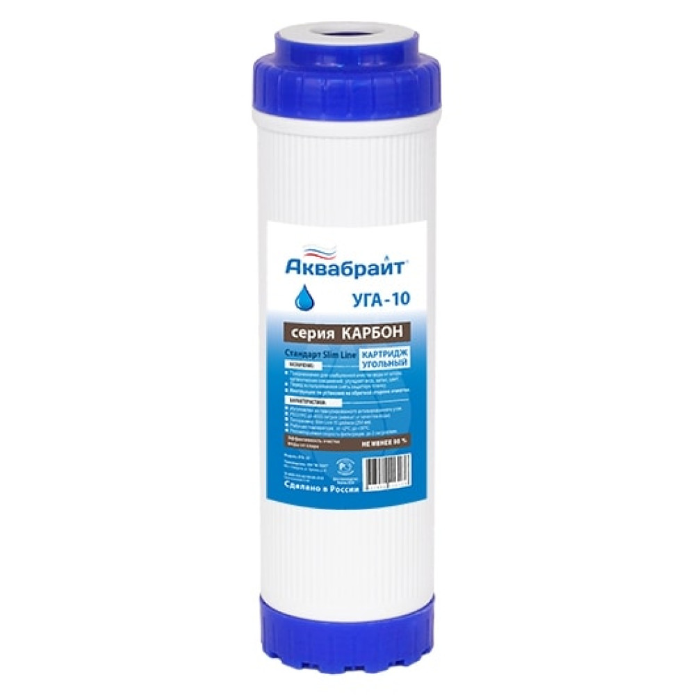 Картридж АКВАБРАЙТ УГА-10 изготовлен из гранулированного активированного угля с пищевым допуском.