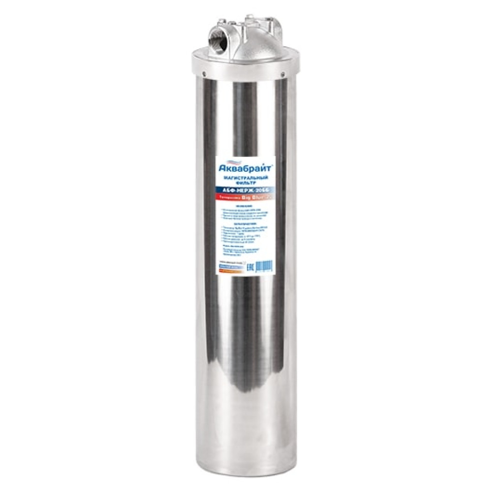 Магистральный фильтр АКВАБРАЙТ модель АБФ-НЕРЖ-20 ББ изготовлен из НЕРЖАВЕЮЩЕЙ СТАЛИ.