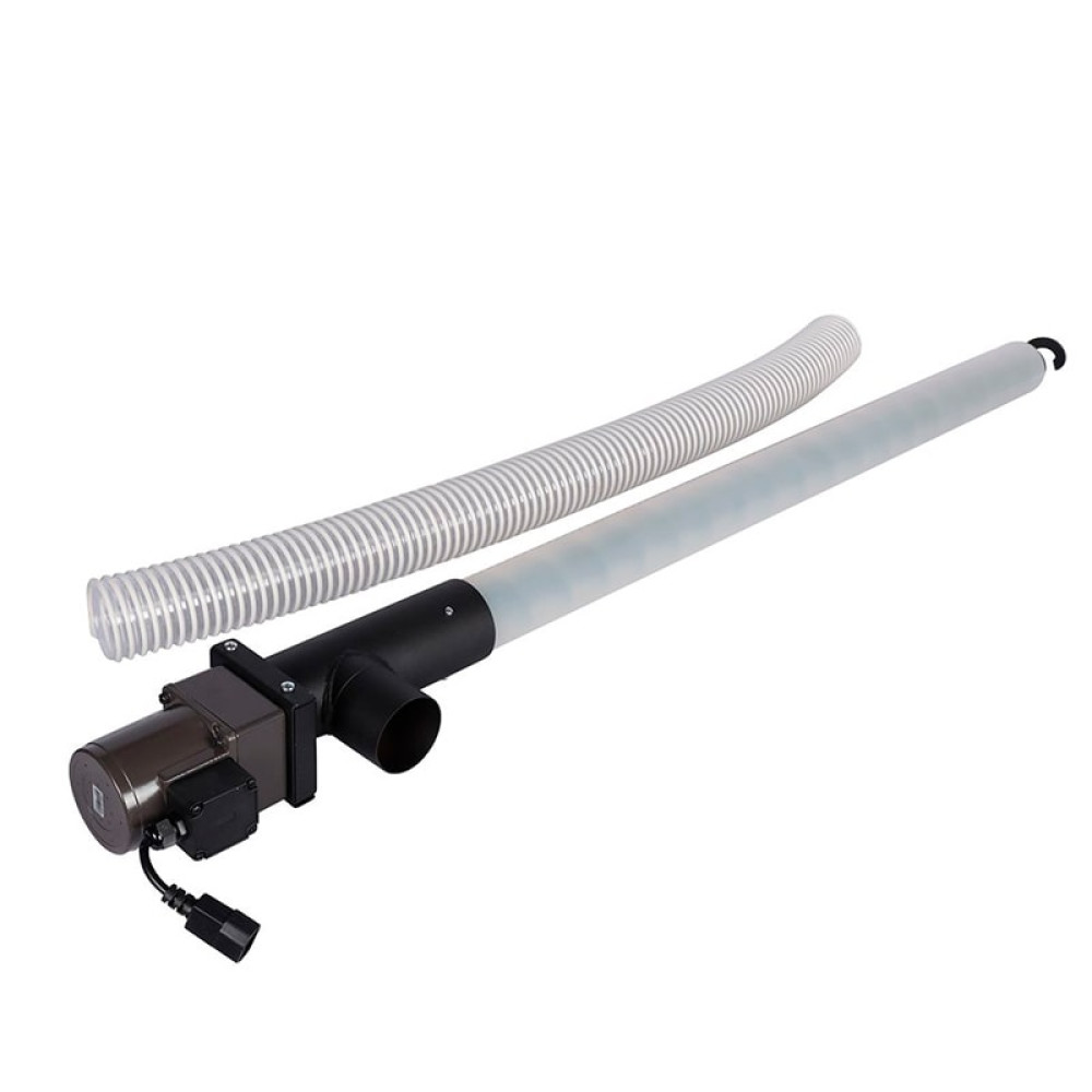 Механизм подачи топлива состоит из шнека, с помощью которого происходит подъем топлива из топливного бункера, трубы по которой топливо поднимается из топливного бункера, мотор-редуктора, который вращает шнек подачи топлива, корпуса механизма и цепочки, которой механизм подвешивается к топливному бункеру, а так же гофрированного шланга-топливопровода.