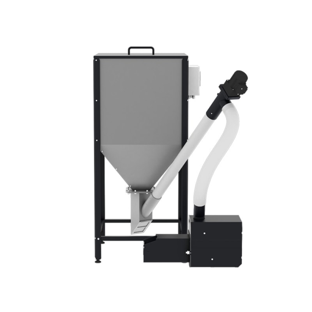 устанавливается с помощью адаптера. Рядом с котлом размещается бункер, из которого топливо посредством шнековой подачи поступает в горелку;