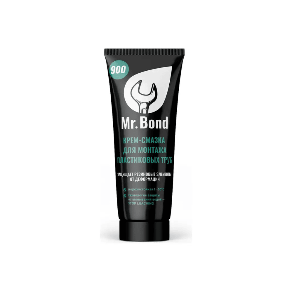Mr.Bond® 900 — это крем-смазка для монтажа пластиковых труб из ПВХ. Она обеспечивает лёгкое скольжение и предотвращает повреждение элементов при установке.