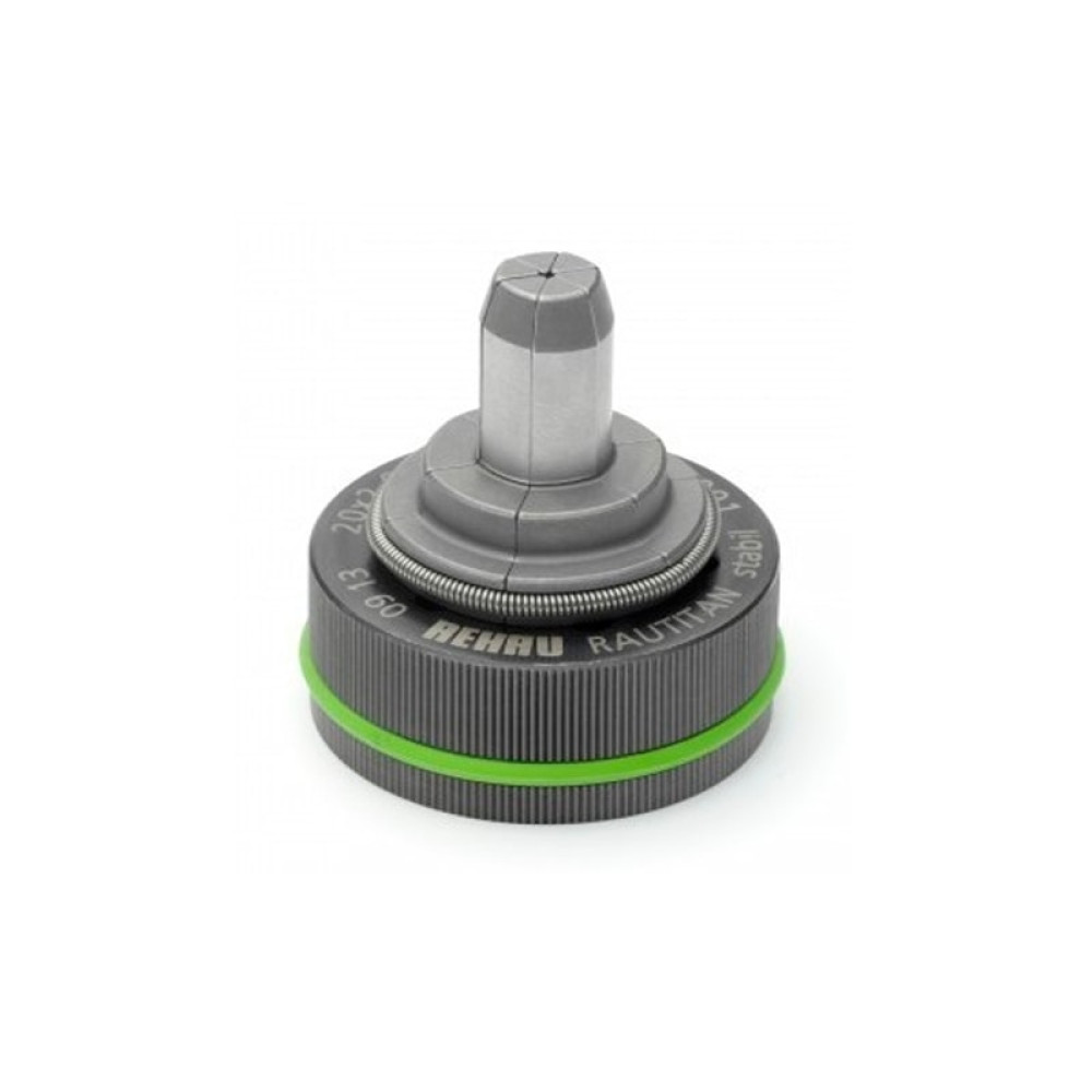 Насадка имеет на поверхности продольное рифление с цветовым опознавательным кольцом зелёного цвета - это говорит о том, что насадка предназначена для развальцовки труб типа Rautitan stabil. Цанги расширительной насадки скруглены на конус.