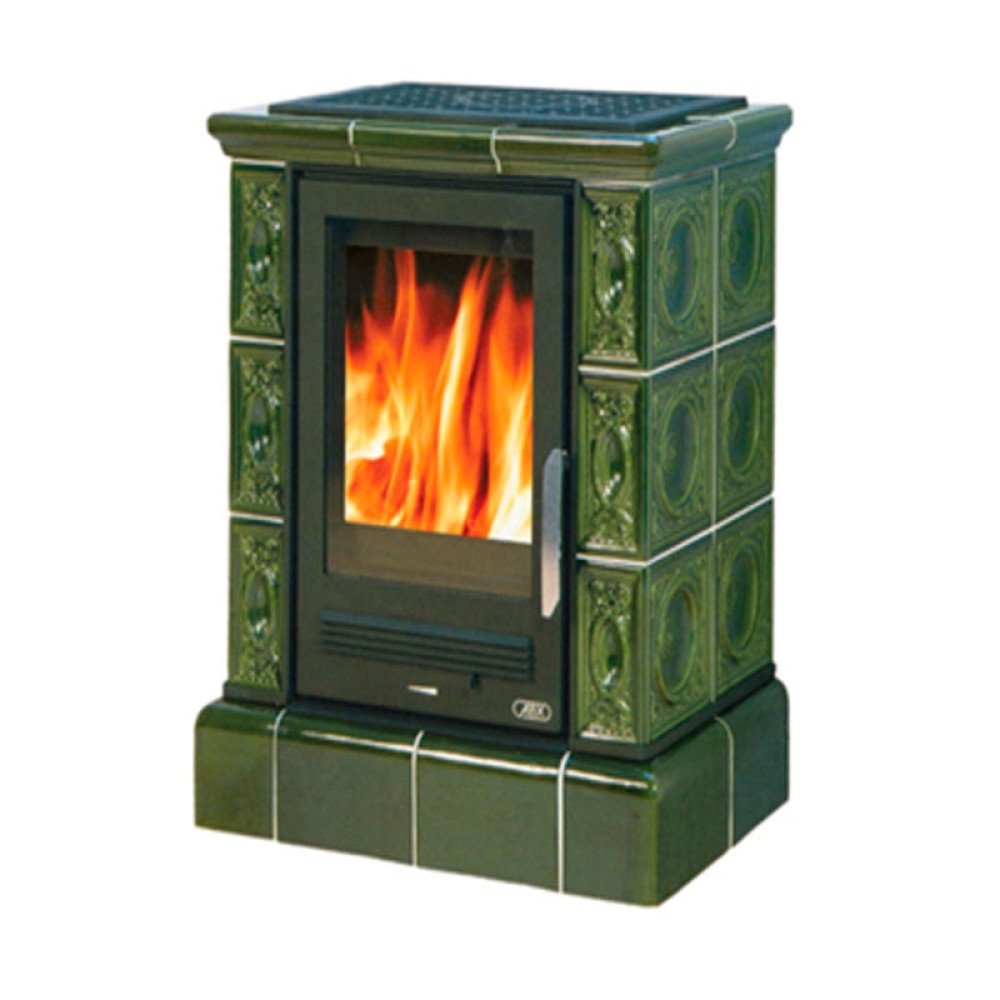 Печь-камин ABX Helvetia Exclusive кафельный цоколь зелёный