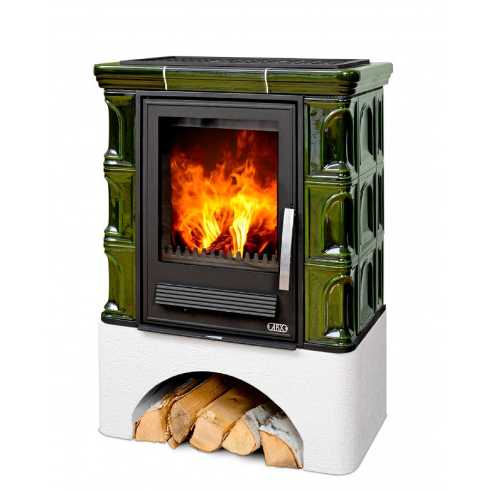 Печь-камин ABX Iberia K белый цоколь зелёный