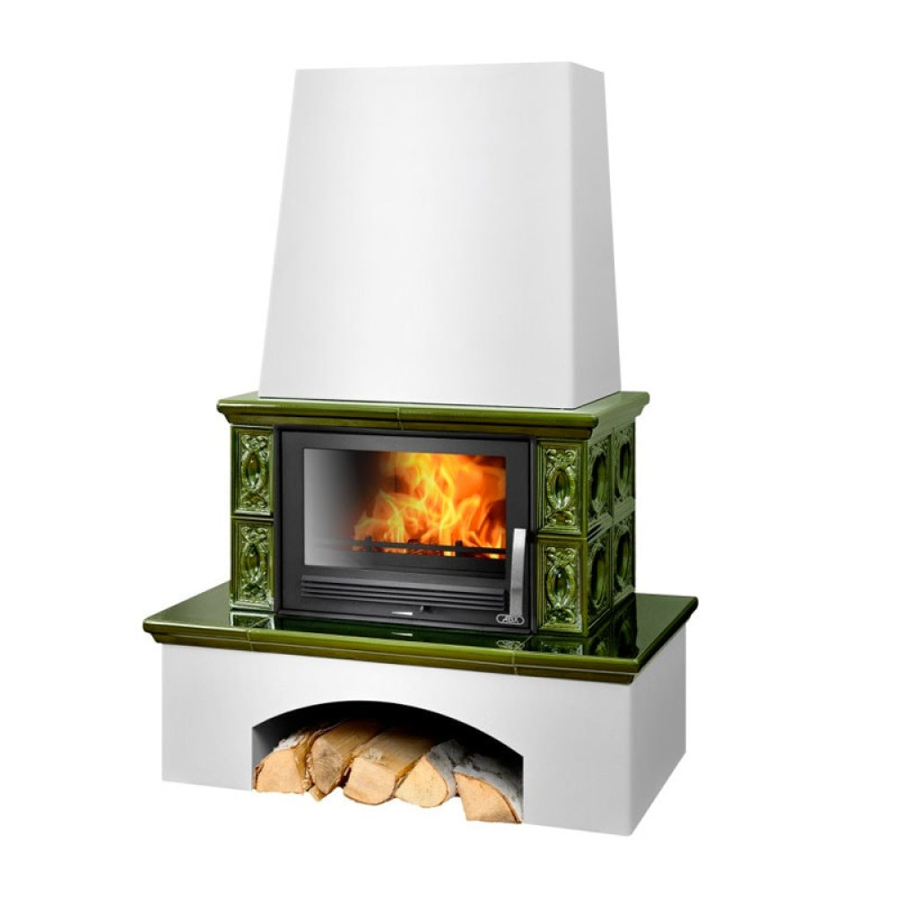 Печь-камин ABX Lombardie белый цоколь зелёный