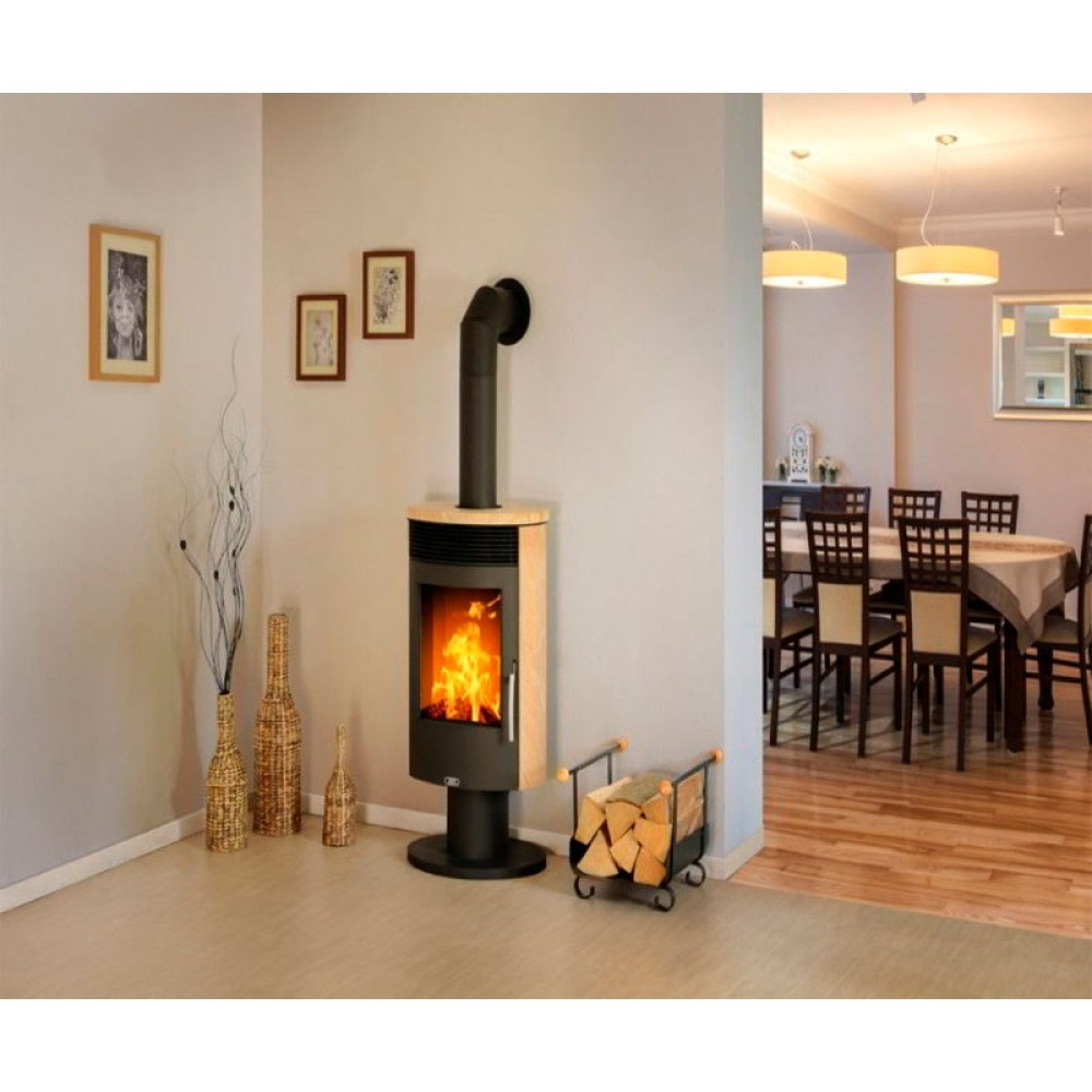 Печь-камин ABX Tartu 5 поворотный чёрная сталь бразильский песчаник