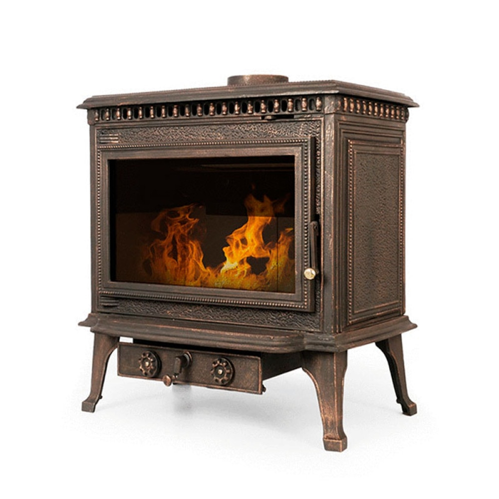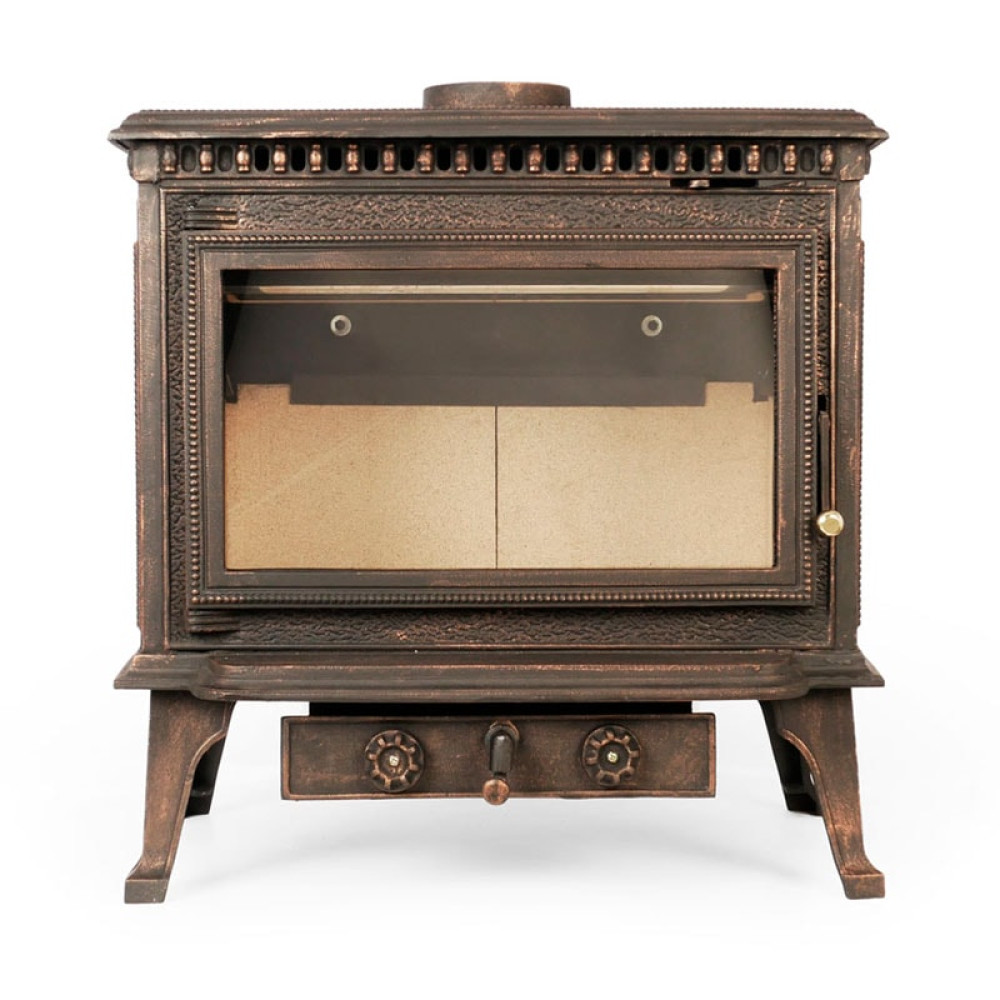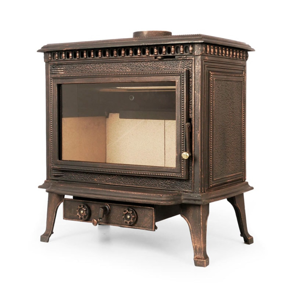 Чугунная дверца печи оснащена удобной ручкой с герметичным затвором, исключающим проникновение внутрь помещения продуктов сжигания топлива, и витро-керамическим стеклом, позволяющим Вам наслаждаться всей красотой живого огня. Благодаря устройству печи стекло будет всегда оставаться чистым за счет того, что сажа и смолы выгорают без остатка. Вращающаяся колосниковая решетка повышает эффективность сжигания твердого топлива.