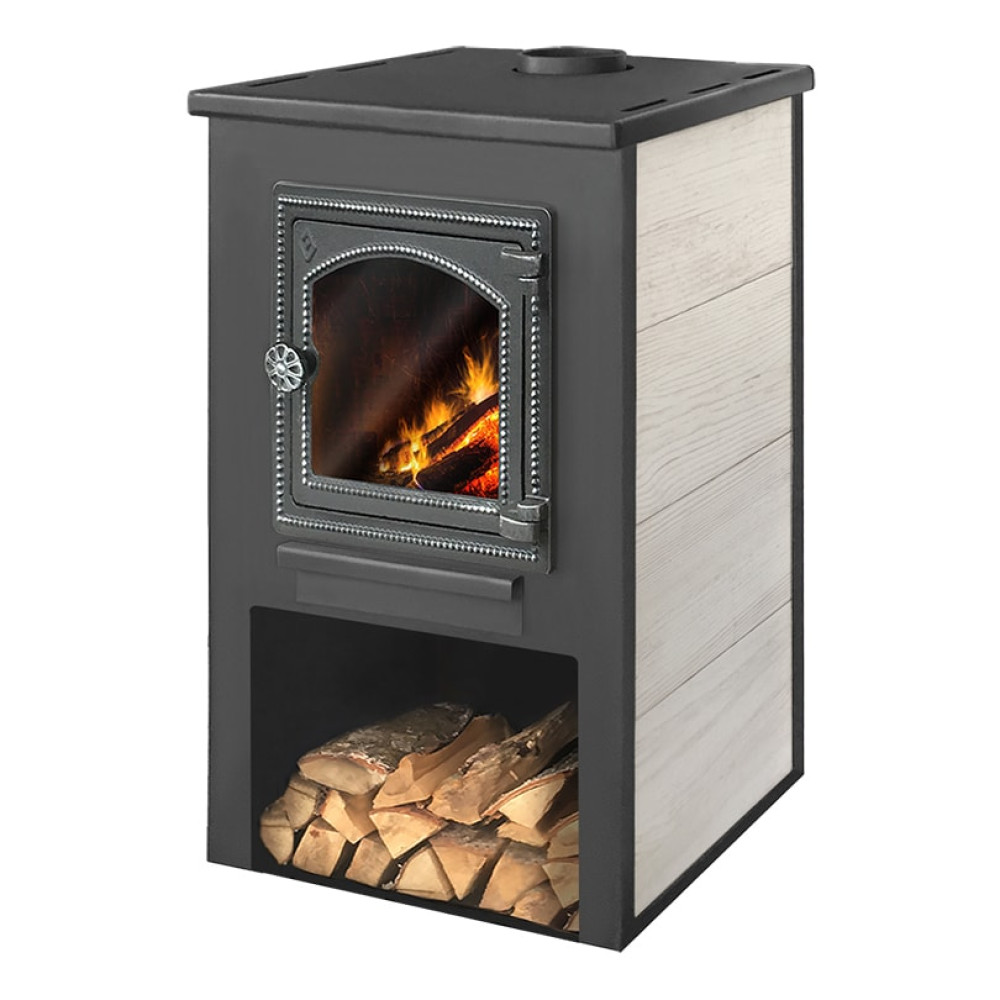 Топочная камера, футерована легкозаменяемым высококачественным шамотом, прогревается дольше обычной чугунной топки ,но теплоотдача гораздо больше. Шамот предохраняет стенки печи от перегревания, тем самым увеличивает срок службы печи. Зуб отбойник из нержавеющей стали, толщиной 2 мм, препятствует "опрокидыванию тяги" , что обеспечивает надежную тягу при любых погодных условиях. Длительность горения одной закладки дров - до 5 часов.