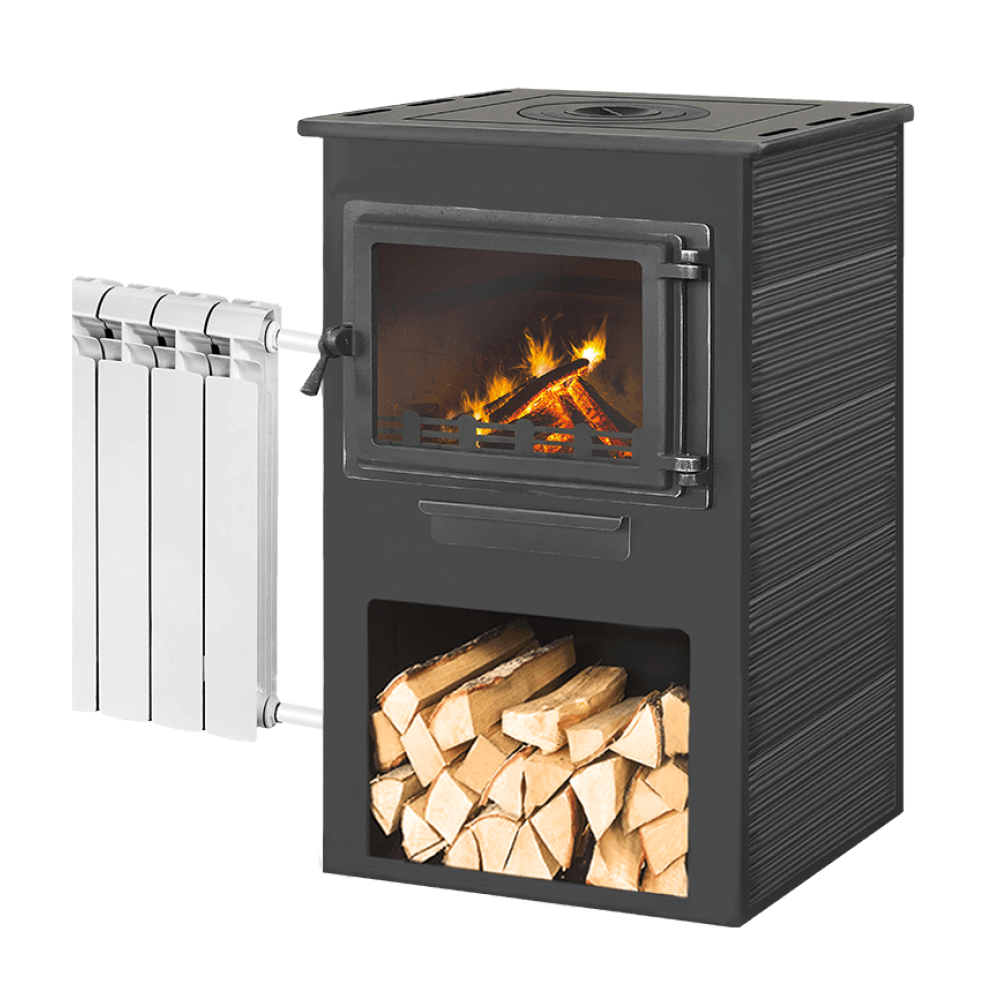 Печь-камин Этна Панорама с плитой и теплообменником антрацит