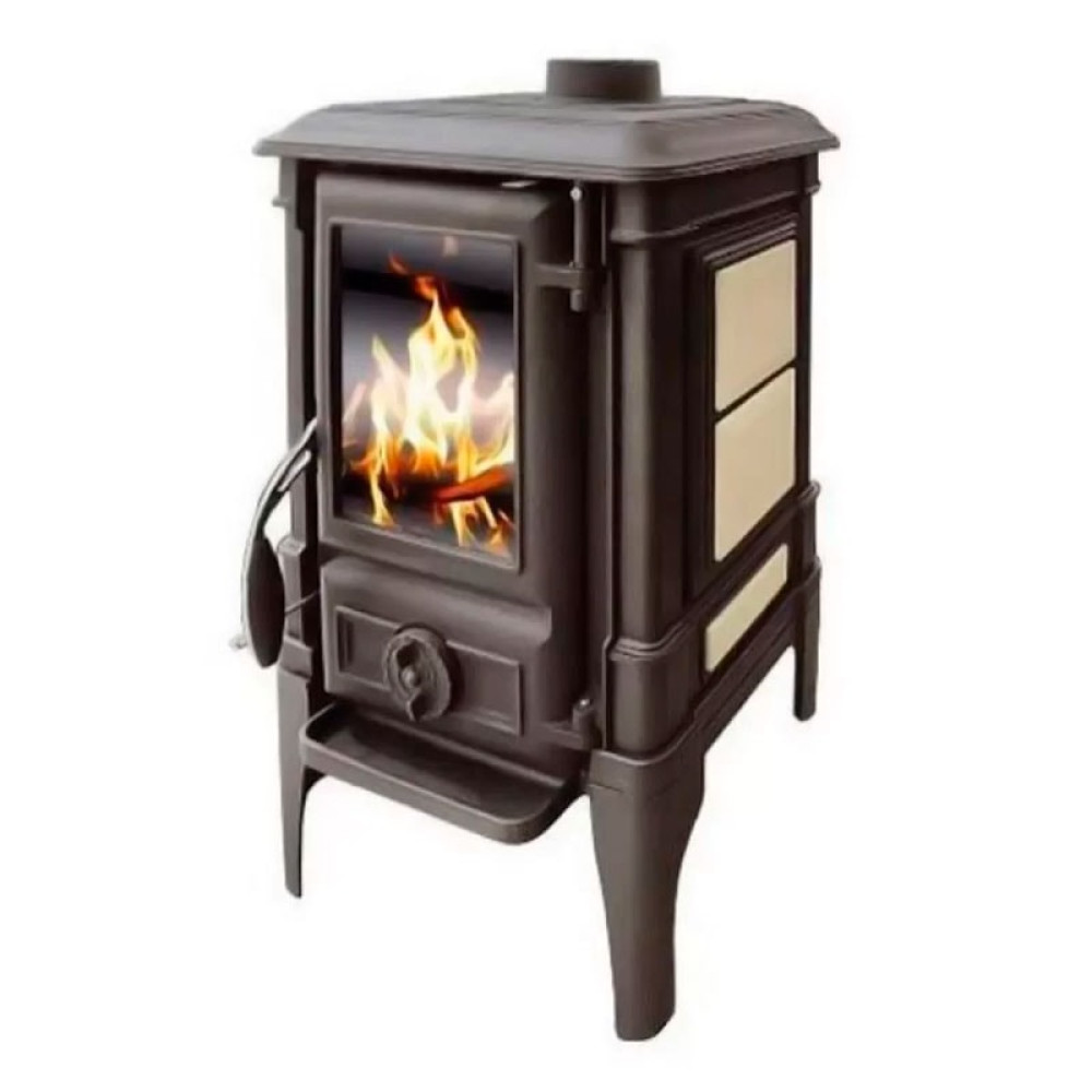 Печь предназначена для обогрева закрытого помещения. Тепло передается через огнеупорное стекло и через литые части печи. Детали печи изготовлены из чугуна, на дверце топки расположено огнеупорное стекло. Печь оборудована первичным и вторичным регуляторами воздуха, которые регулируют количество воздуха необходимого для горения. Первичный регулятор воздуха должен быть полностью открыт на протяжении всего времени розжига (15-20 минут). Во время работы печи, при достижении стабильного режима горения, с целью экономии топлива, первичный регулятор закрывается. Вторичный регулятор позволяет содержать стекло в чистоте и улучшает процесс горения. КПД печи: 84%Характеристики