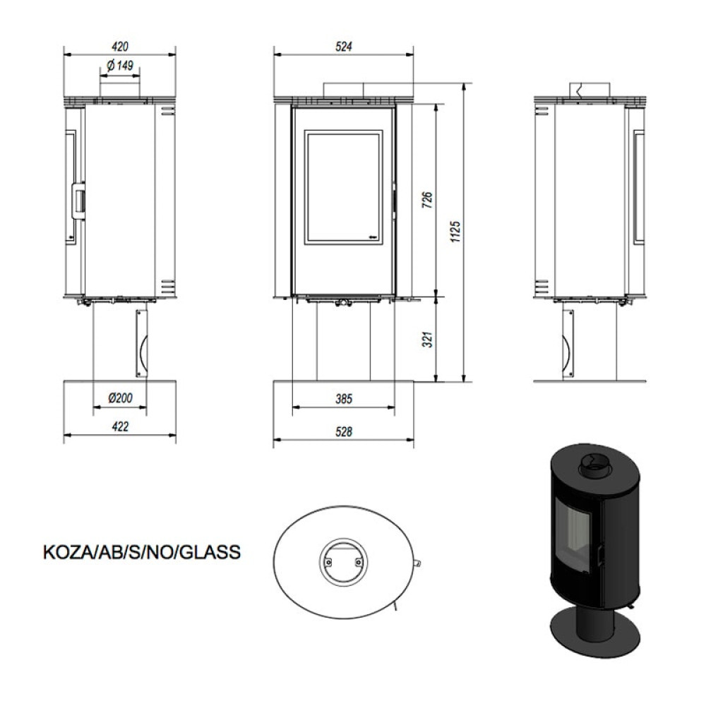 Печь Koza AB/S/N современной цилиндрической формы. Камера сгорания, корпус печи, верхняя плита и дверца изготовлены из стали. Печь имеет верхнее или заднее подключение к дымоходу. Камера сгорания футерована керамикой Acumotte. Дверца с большим панорамным стеклом. Камера под печкой оснащена механизмом «нажмите для открытия» - открывается нажатием. Тройная система подачи воздуха в камеру сгорания: первичный и вторичный воздух, а также воздух, который подаётся на стекло (система чистого стекла). Вся продукция компании Kratki соответствует европейским стандартам, что гарантирует высокое качество продукции.