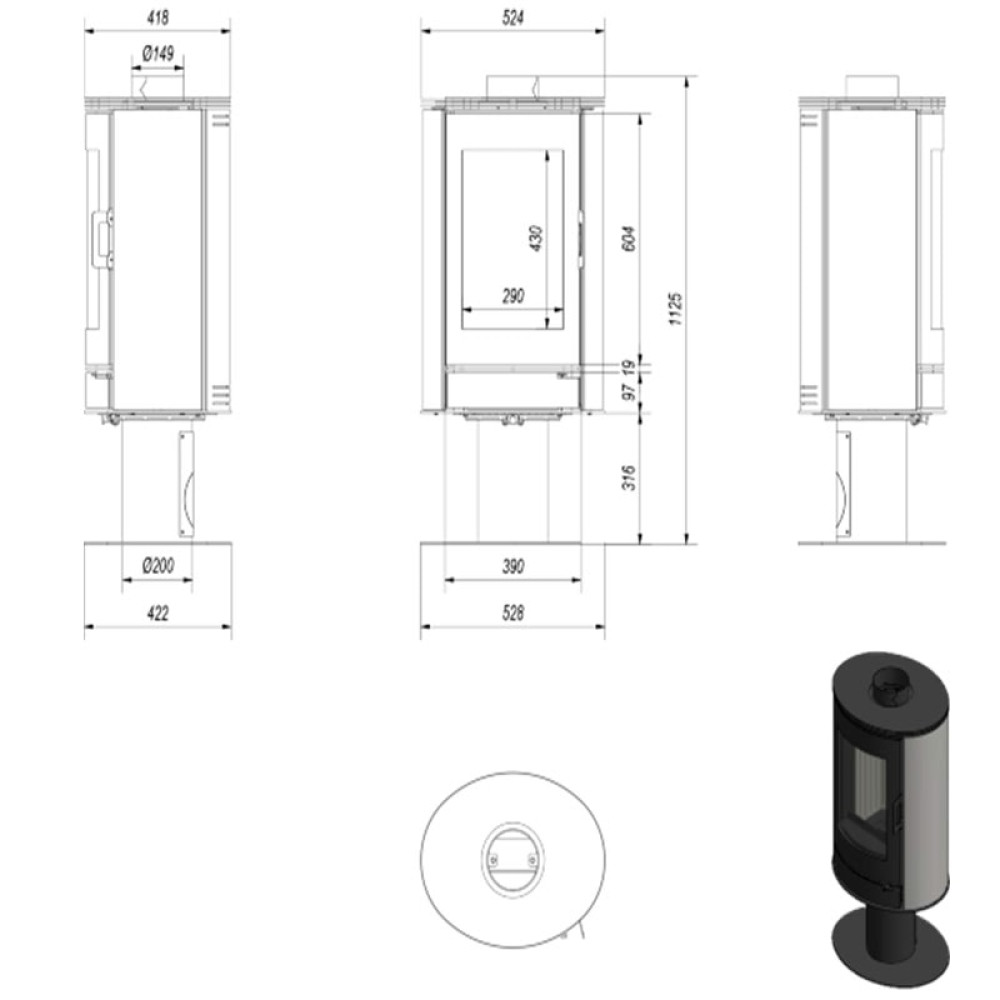 Печь Koza AB/S/N современной цилиндрической формы. Камера сгорания, корпус печи, верхняя плита и дверца изготовлены из стали. Печь имеет верхнее или заднее подключение к дымоходу. Камера сгорания футерована керамикой Acumotte. Дверца с большим панорамным стеклом. Камера под печкой оснащена механизмом «нажмите для открытия» - открывается нажатием. Тройная система подачи воздуха в камеру сгорания: первичный и вторичный воздух, а также воздух, который подаётся на стекло (система чистого стекла). Вся продукция компании Kratki соответствует европейским стандартам, что гарантирует высокое качество продукции.