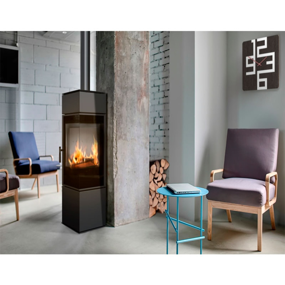 В конструкции применена тройная система подачи воздуха, что обеспечивает быстрый розжиг дров, более качественное их сгорание, а также поддерживает стекло дверцы в постоянной чистоте.