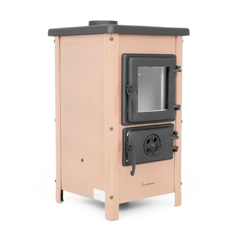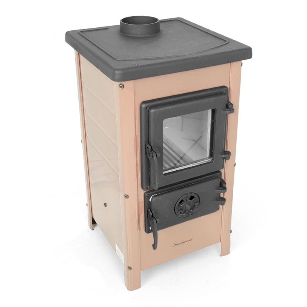 Буржуйка выполнена с высококачественной кованой стали и чугуна. Эмалированные стенки придают печи современный глянцевый дизайн. Эмаль покрыта жаростойкой краской, три цвета: бежевый, бордовый. Дверца топки, зольник, колосник и верхняя крышка выполнены из чугуна и покрыты матовой термостойкой краской.