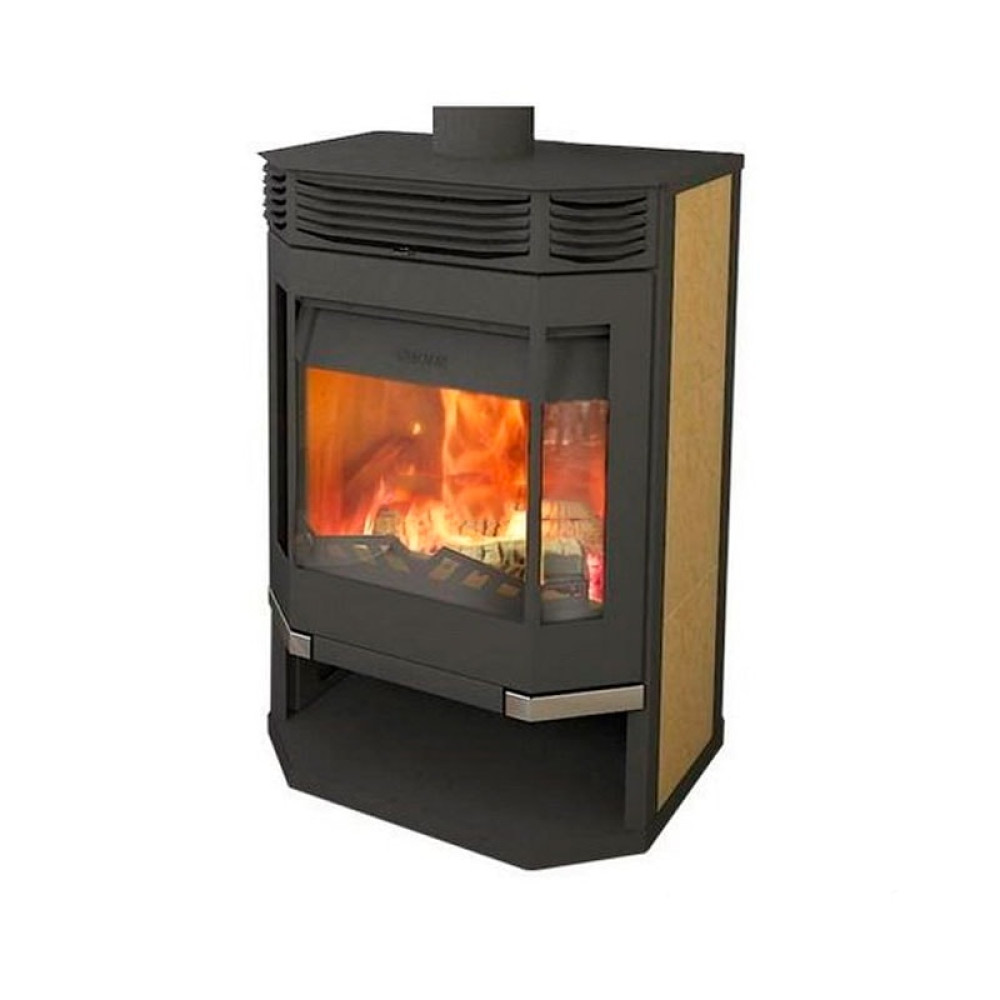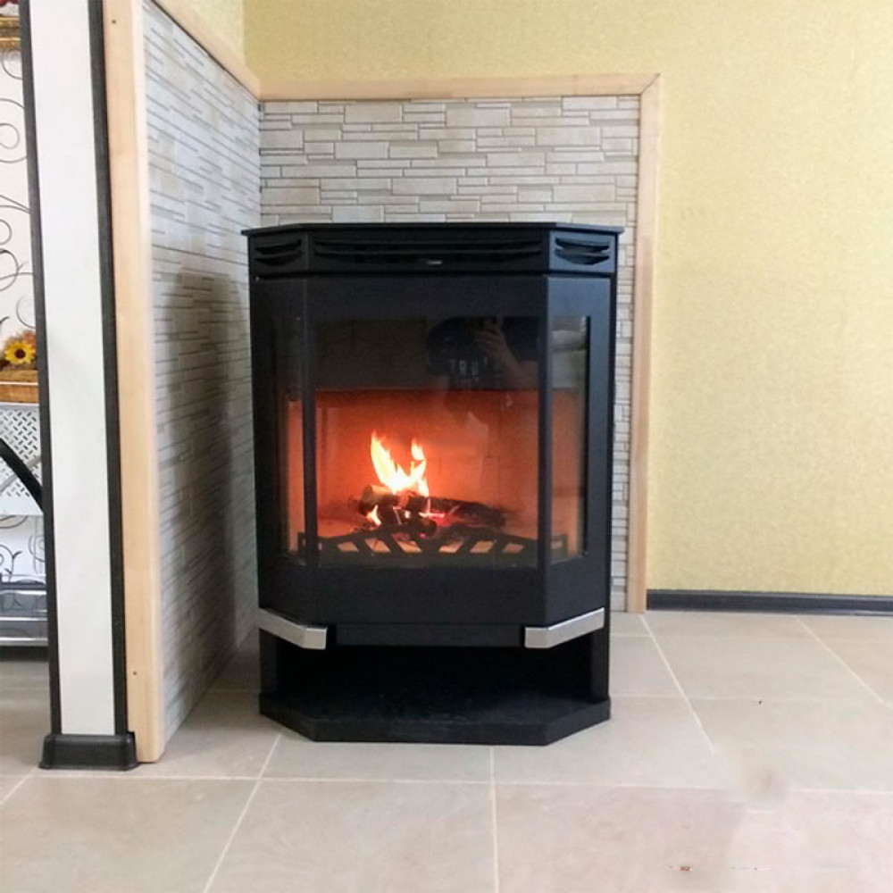 Корпус печи камина выполнен из стали. Стальные печи быстро прогревают воздух в помещении. Начинают давать тепло уже через 15 минут после растопки.