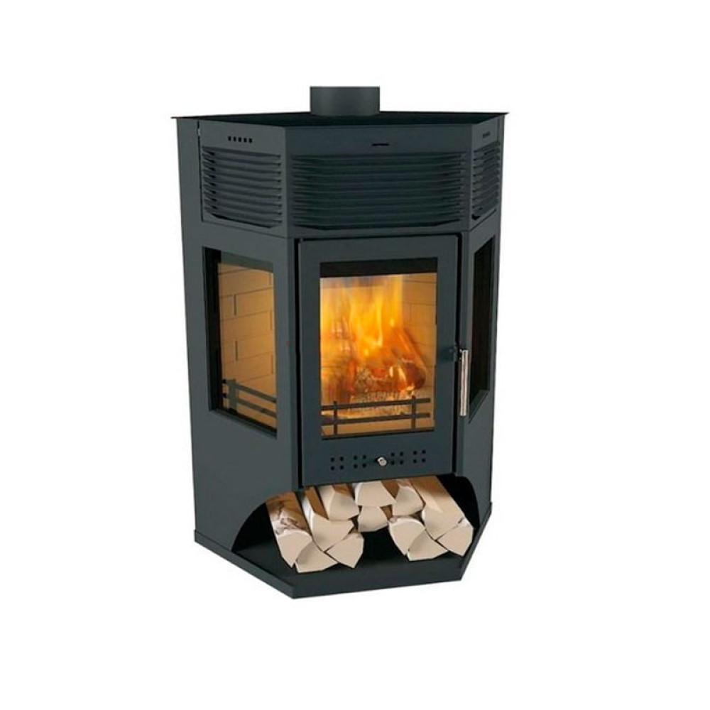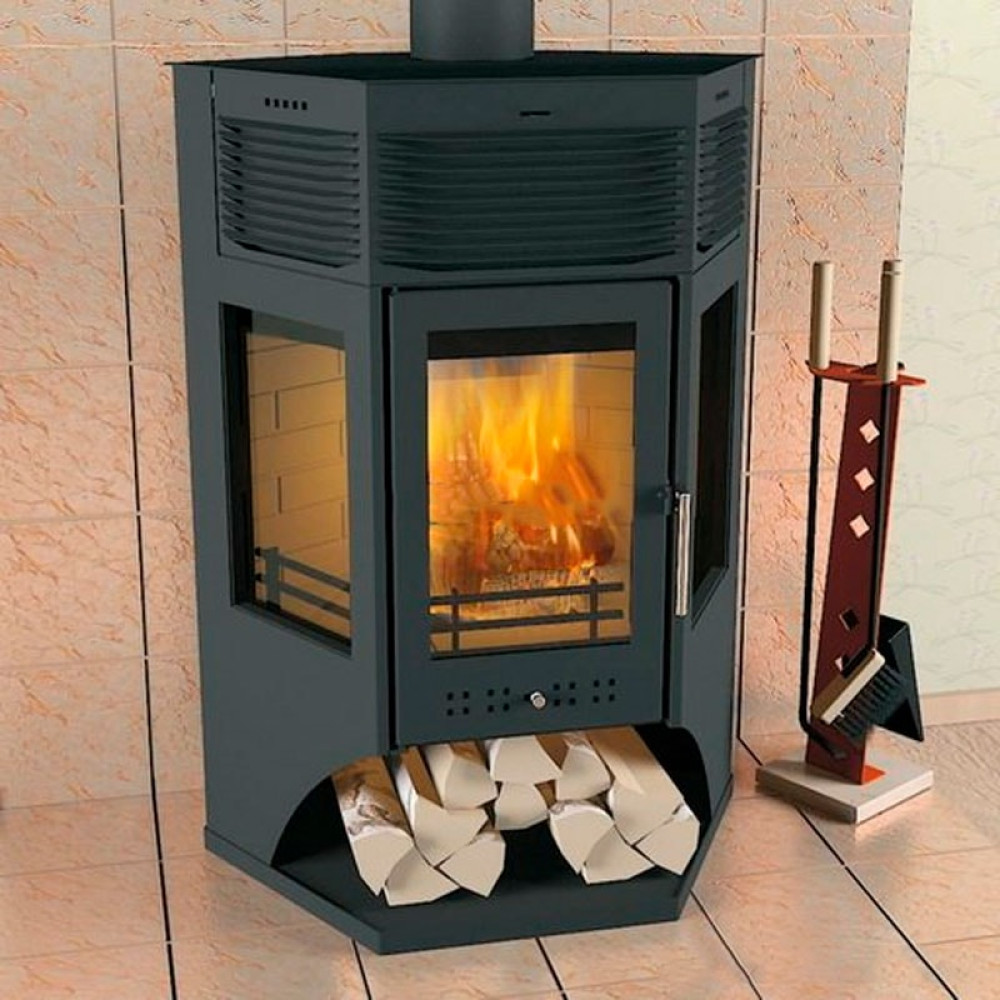 Корпус печи камина выполнен из стали. Стальные печи быстро прогревают воздух в помещении. Начинают давать тепло уже через 15 минут после растопки.