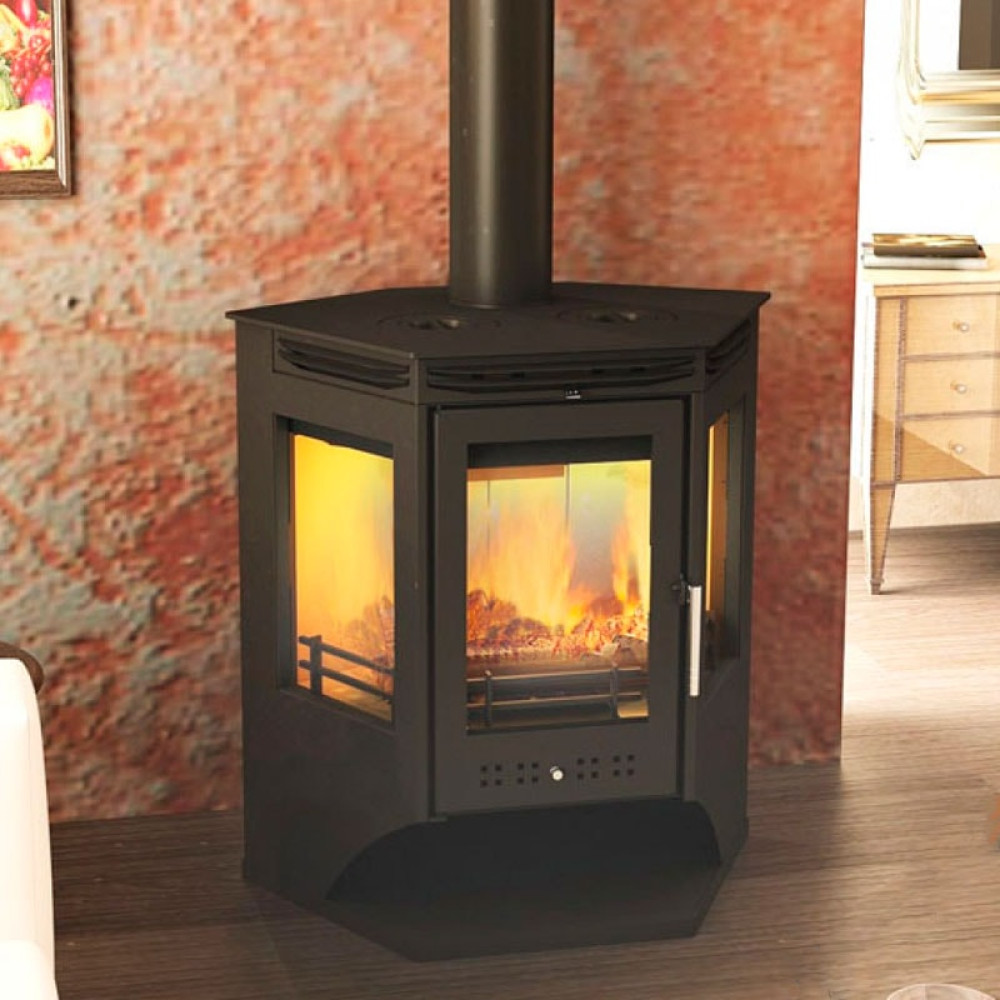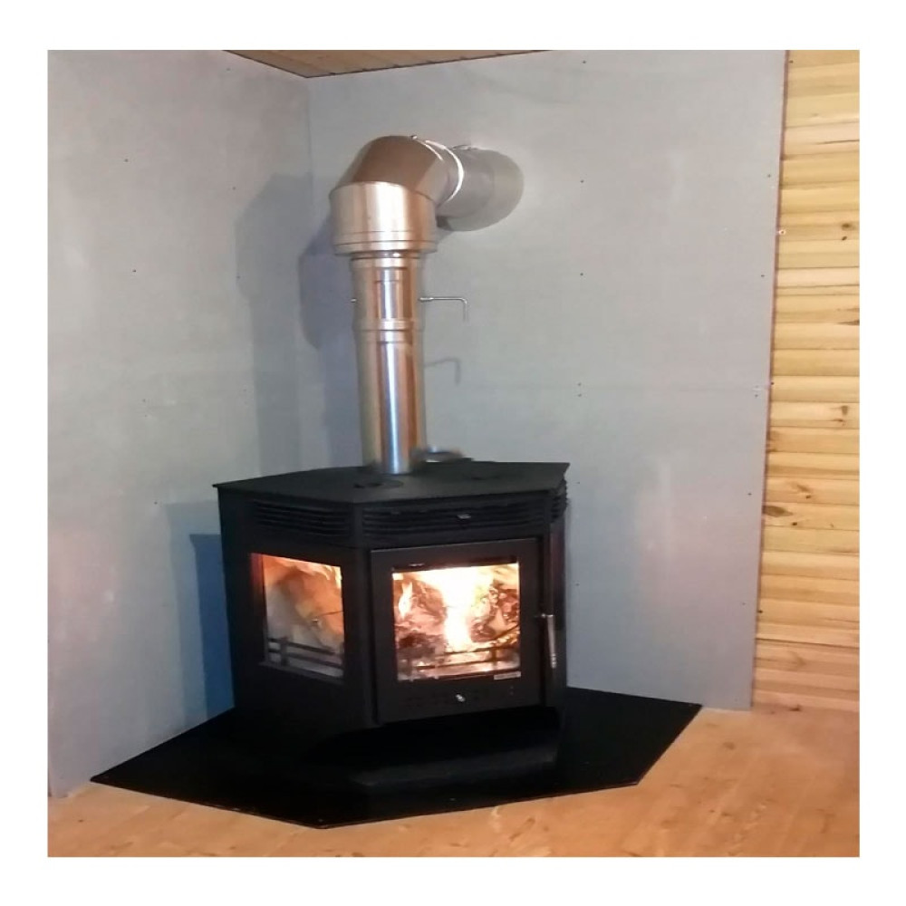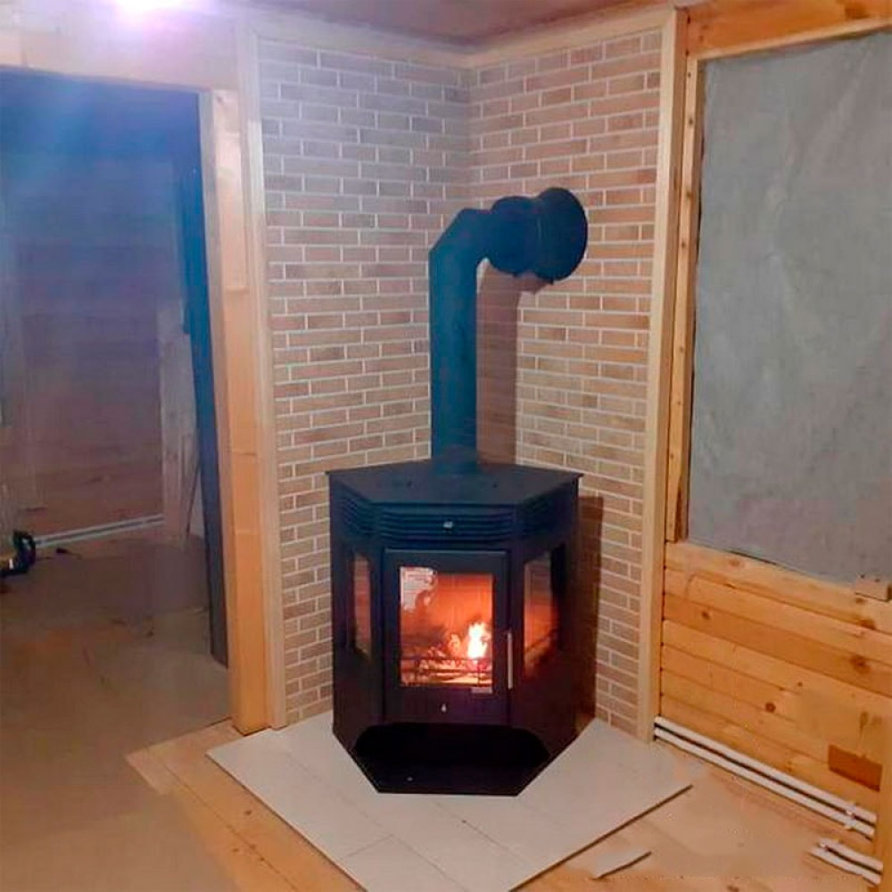 Корпус печи камина выполнен из стали. Стальные печи быстро прогревают воздух в помещении. Начинают давать тепло уже через 15 минут после растопки.