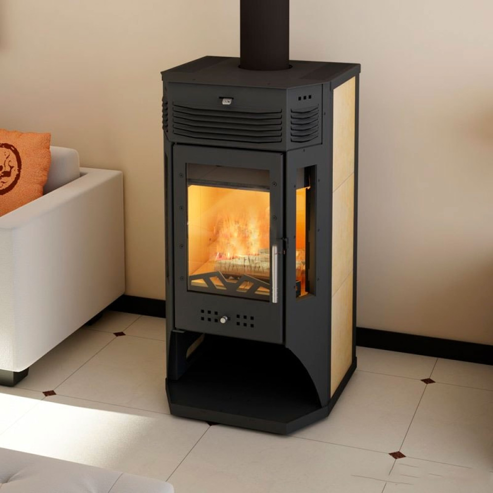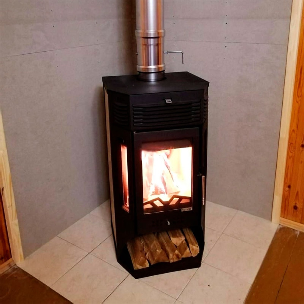 Корпус печи камина выполнен из стали и облицован декоративной керамикой. Стальные печи быстро прогревают воздух в помещении. Начинают давать тепло уже через 15 минут после растопки.