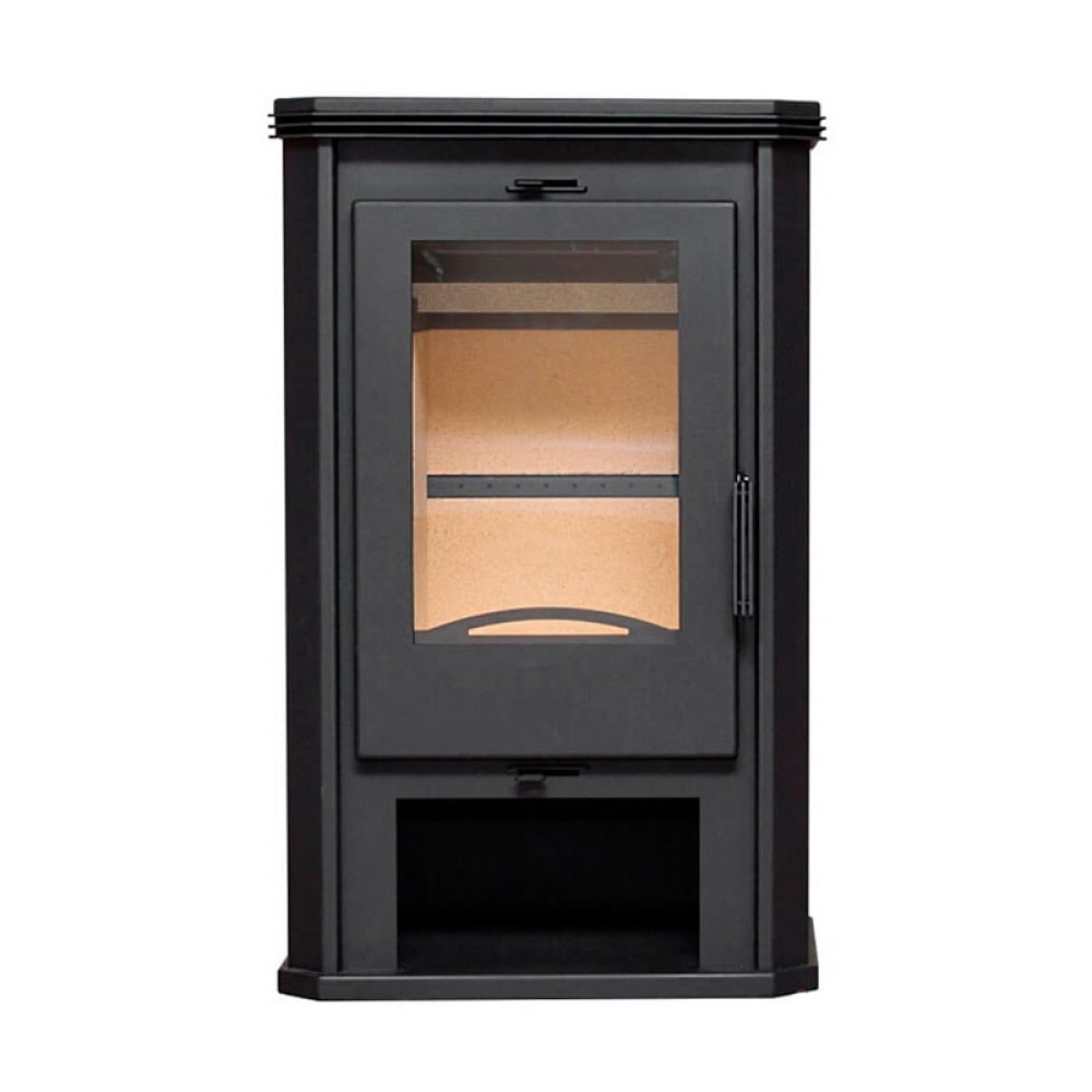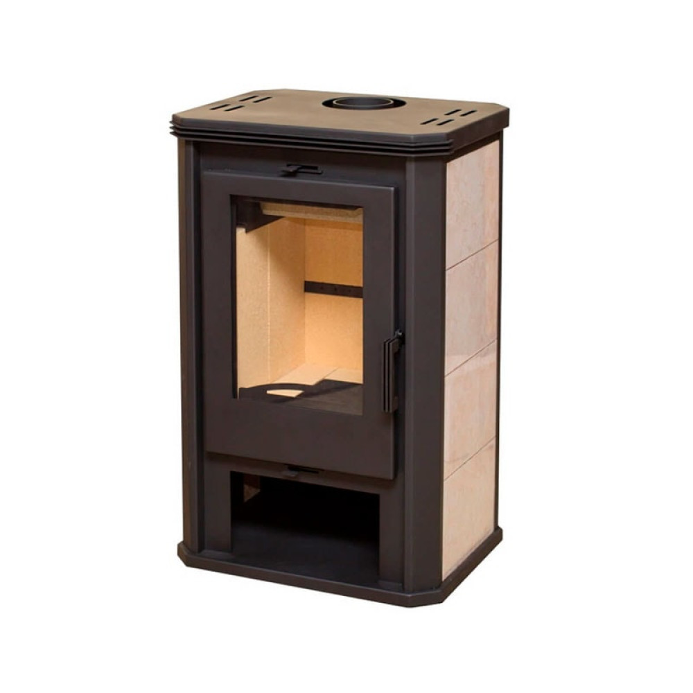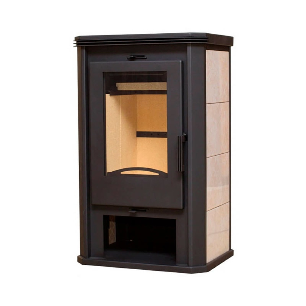 Корпус печи камина выполнен из стали и облицован декоративной керамикой. Стальные печи быстро прогревают воздух в помещении. Начинают давать тепло уже через 15 минут после растопки.