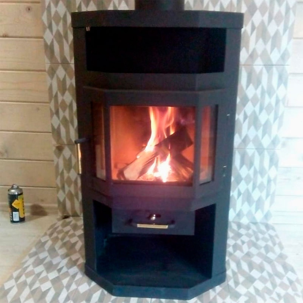 Корпус печи камина выполнен из стали и облицован декоративной керамикой. Стальные печи быстро прогревают воздух в помещении. Начинают давать тепло уже через 15 минут после растопки.