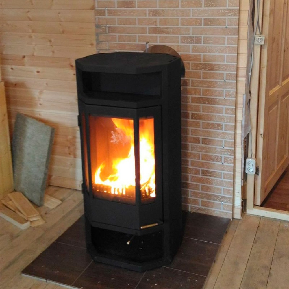 Корпус печи камина выполнен из стали. Стальные печи быстро прогревают воздух в помещении. Начинают давать тепло уже через 15 минут после растопки.