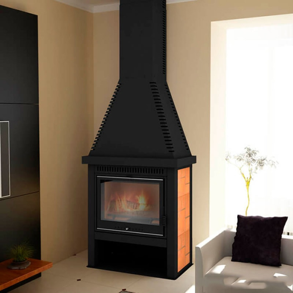 Корпус печи камина выполнен из стали. Стальные печи быстро прогревают воздух в помещении. Начинают давать тепло уже через 15 минут после растопки.