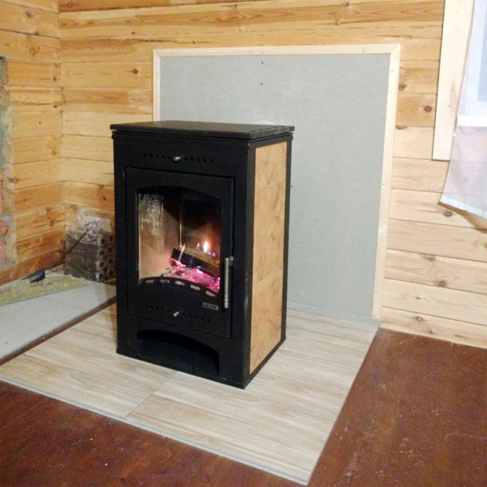 Корпус печи камина выполнен из стали и облицован декоративной керамикой. Стальные печи быстро прогревают воздух в помещении. Начинают давать тепло уже через 15 минут после растопки.