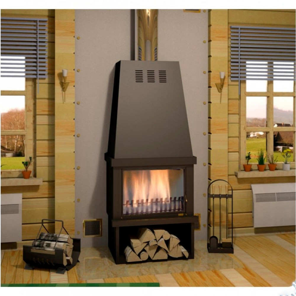 Корпус печи камина выполнен из стали. Стальные печи быстро прогревают воздух в помещении. Начинают давать тепло уже через 15 минут после растопки.