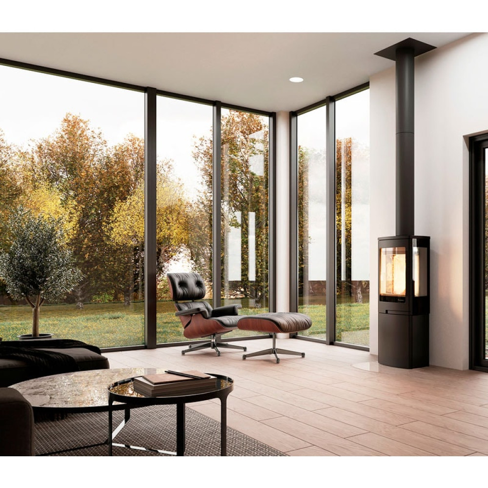 Топка имеет не только фронтальное стекло, но и два боковых, поэтому за языками пламени можно наблюдать из любой точки помещения. Прозрачность стекла поддерживается технологией "чистое стекло".