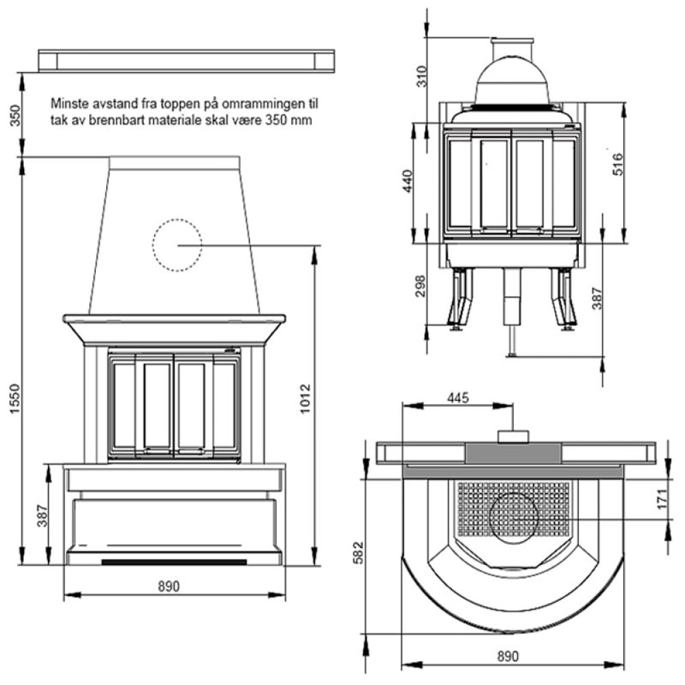 Печь-камин Nordpeis Geilo пристенный топка NI-22 складные дверцы