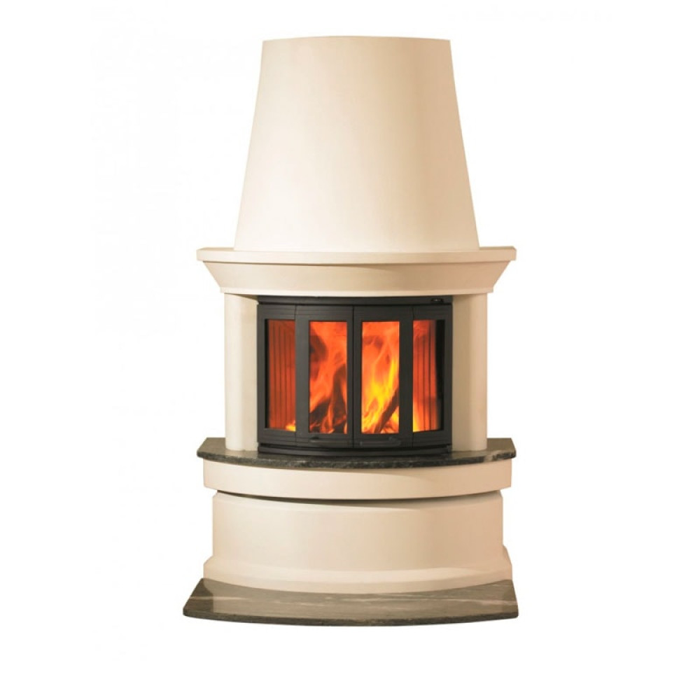 Тепловая эффективность высокая - 78%. Дизайн модели относится к кантри стилю. Каминная полукруглый корпус выпонен из компрозитного материала, хорошо удерживающего тепло.