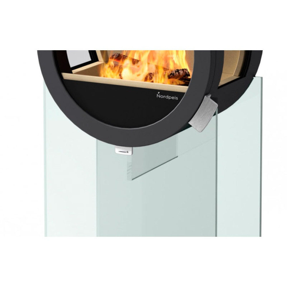 Дверь у Nordpeis открывается вбок. Фиксируется дверь ручкой, плотно прижимающей дверь к корпусу печи и не пропускающей неконтролируемые потоки воздуха.