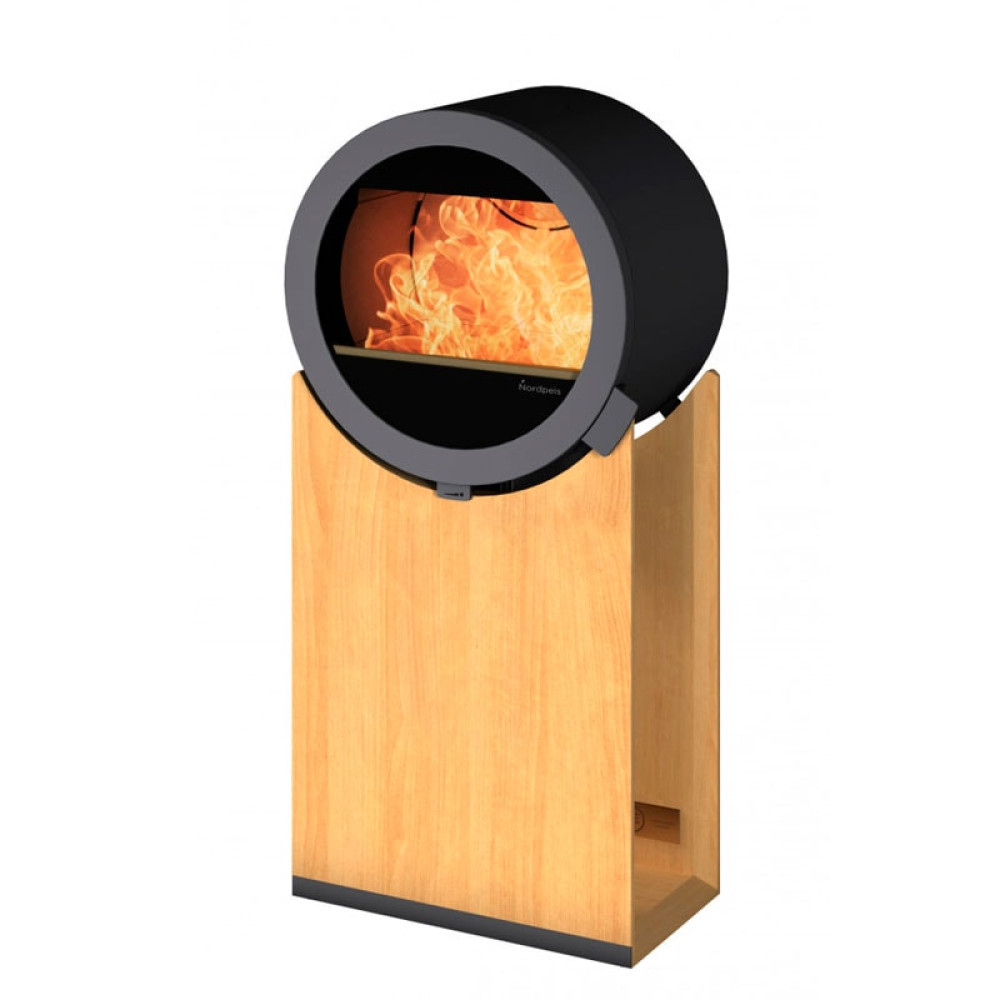 Nordpeis – это отличная дровяная печь с прекрасным внешним видом. Боковое стекло данной модели позволяет наблюдать огонь с нескольких сторон. Основание печи выполнено из необработанного дуба, что дает возможность обработать его нейтральным или пигментированным маслом