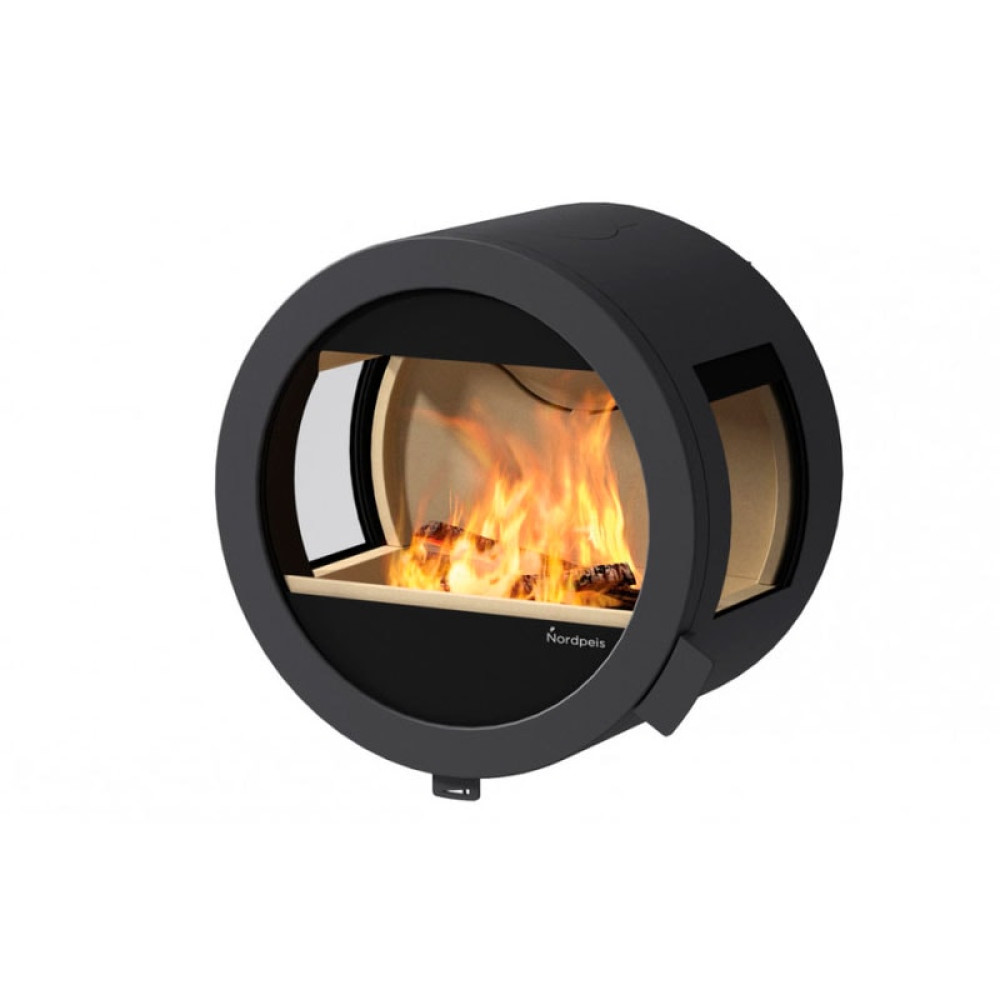 Корпус печи камина Nordpeis выполнен из стали. Стальные печи быстро прогревают воздух в помещении. Они начинают давать тепло через 15 минут после растопки.