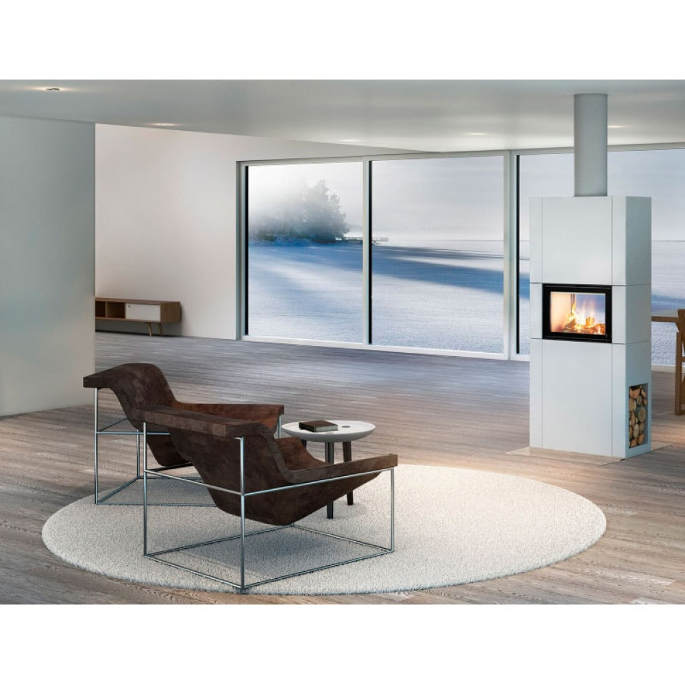 Каминокомплект Osaka T прекрасное решение, например, для совмещенной гостиной и кухонной зоны, тоннельная топка позволит любоваться огнем с каждой стороны. Корпус сделан из облегченного бетонного композита Shape Ston, поверхность гладкая, серого цвета, можно покрасить в любой цвет латексной или акриловой красками, либо текстурной штукатуркой на цементной основе. Стальная топка имеет две дверцы с боковым открыванием и термостойкие двойные стекла с шелкографией, установленный доводчик, не даст оставить дверь открытой. Внутри топки установлен изоляционный материал Thermotte белого цвета, это собственная разработка компании Nordpeis. Дополнительное оборудование и аксессуары позволят увеличить теплоотдачу камина Осака Т и придать ему эксклюзивность.