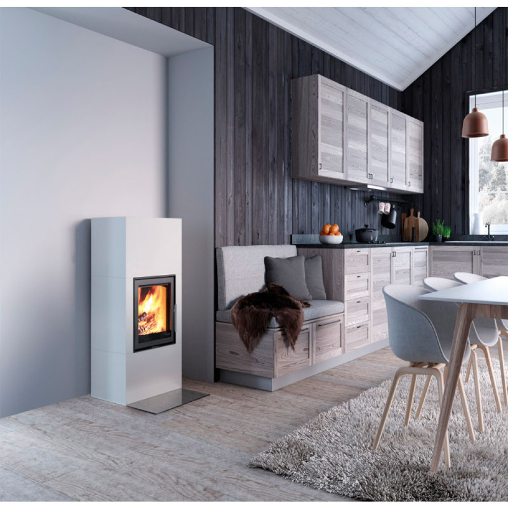 Теплоаккумулирующая печь-камин Nordpeis является современным отопительным оборудованием, которое точно станет центром притяжения в Вашем доме. Он исполнен в лаконичном скандинавском стиле. Данный камин имеет облицовку, выполненную из облегченного термобетона в классическом цвете. Но ее можно покрасить в любой желаемый цвет, подходящий под ваш интерьер. А встроенная топка с мощностью 2.1 кВт способна обогреть помещение объемом до 50 м3. Она вмещает небольшой объем брикетов или дров длиной до 250 мм. Дверца имеет боковое открывание, камера сгорания футерована керамикой. За игрой огня и потрескиванием дров приятно и удобно наблюдать через фронтальное стекло. А благодаря имеющейся функции "Чистое стекло" копоть и грязь не будет оседать на стекле топки.