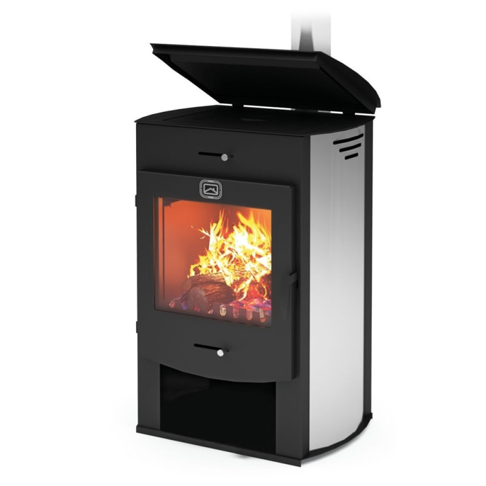 Современный отопительный камин Танго — отличное сочетание эстетических достоинств закрытых дровяных каминов с высокой теплоотдачей, что делает его настоящей находкой для любителей комфортного отдыха на даче или в загородном доме. Плавные линии и вставки из зеркальной нержавеющей стали придают камину визуальную лёгкость, благодаря игре отражений. Камин Танго — это не только яркий элемент интерьера, но и полноценный отопительный прибор, который способен обогреть помещение и помочь приготовить и разогреть пищу на чугунной плите.
