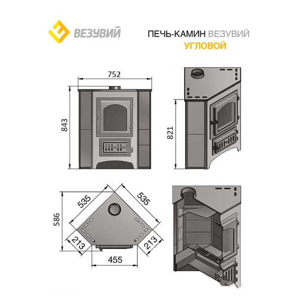 Печь-камин Везувий ПК-01 (220) Т/Х 9 кВт без плиты угловая
