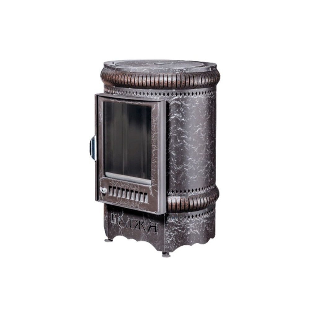 Дверца топки снабжена термостойким керамическим стеклом, которое не лопается при нагреве и температурных перепадах. Через технологические отверстия на дверце в топку подается воздух. Воздушные потоки постоянно циркулируют вдоль дверцы, создавая барьер для оседания копоти. Стекло всегда остается чистым, поэтому в комнате печь «Нелжа» может заменять классический камин. Благодаря цилиндрическому корпусу оборудование хорошо вписывается даже в компактные помещения нестандартной формы.
